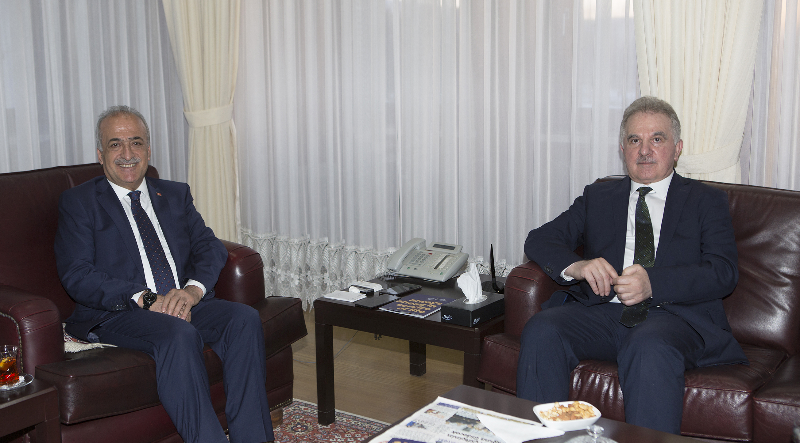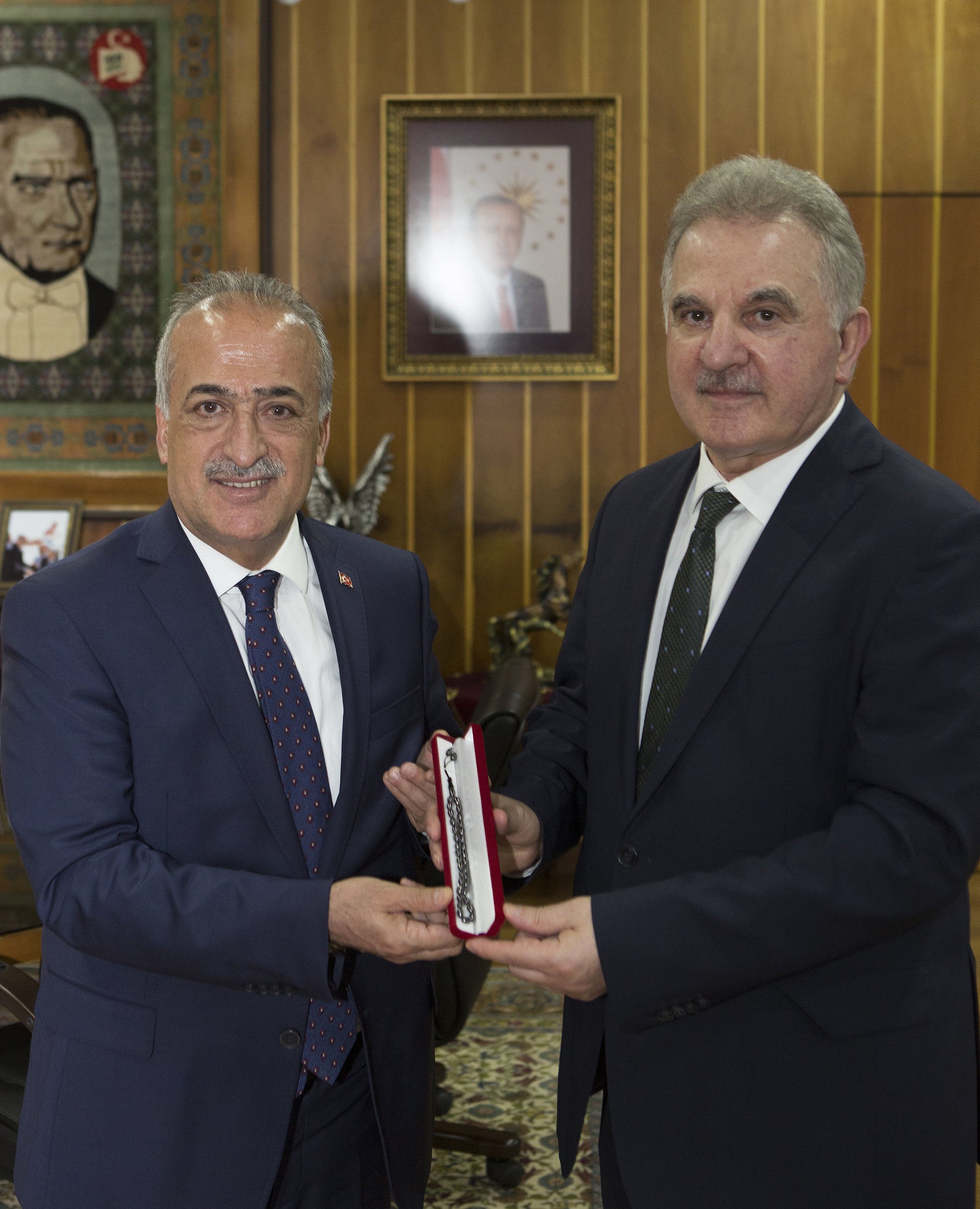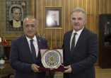 Üniversite ziyaretinde Atatürk Üniversitesi Rektörü Prof. Dr. Ömer Çomaklı ile bir araya gelen Prof. Dr. Muzaffer Elmas, Rektör Çomaklı’dan Atatürk Üniversitesi hakkında bilgi aldı.