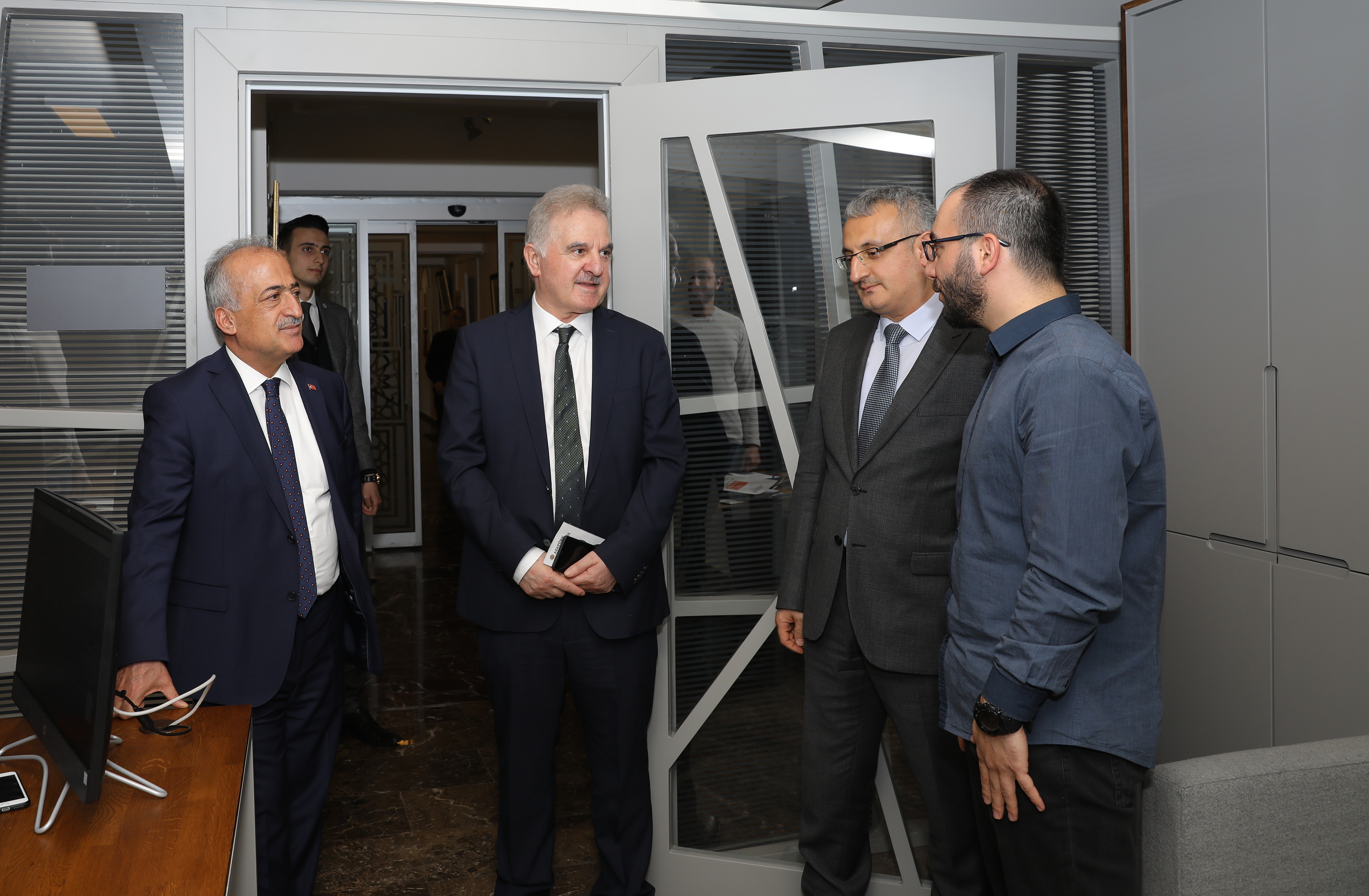 Daha sonra üniversitenin Yeni Nesil Üniversite Tasarım ve Dönüşüm Projesi kapsamında faaliyete geçirilen Kurumsal İletişim Direktörlüğü (KİD) ve alt birimlerini gezen Elmas, Atatürk Üniversitenin gerçekleştirdiği bu dönüşüm hamlesini gayet başarılı bulduğunu ifade etti.