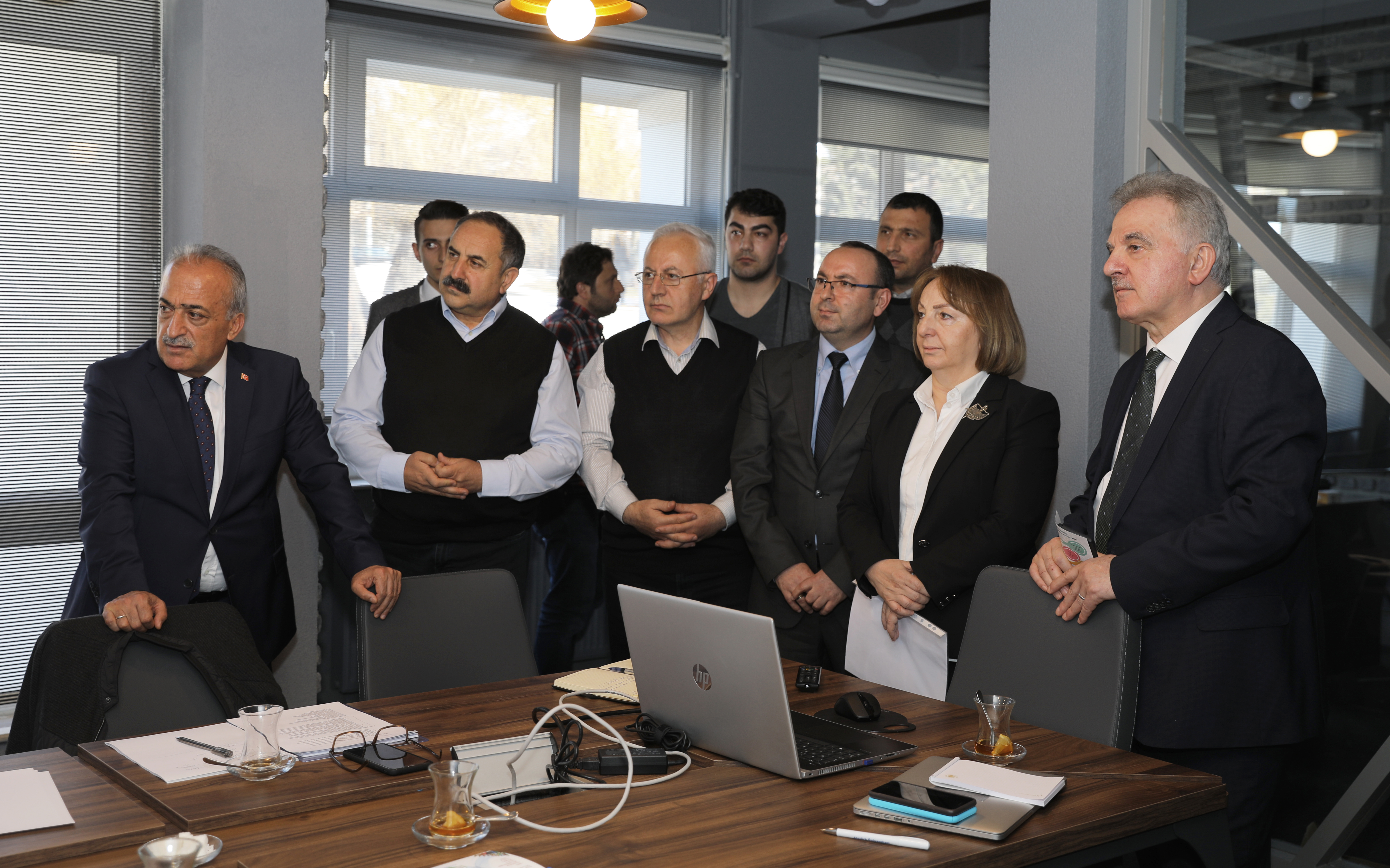 Başkan Muzaffer Elmas ardından, Rektör Çomaklı başkanlığında gerçekleştirilen ve Rektör Yardımcıları, Araştırma Merkez Müdürleri ile birim yöneticilerinin yer aldığı genel bilgilendirme toplantısına katıldı.