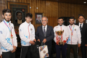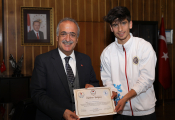 Ziyaretin ardından Rektör Çomaklı, şampiyon sporculara çeşitli hediyeler verdi.