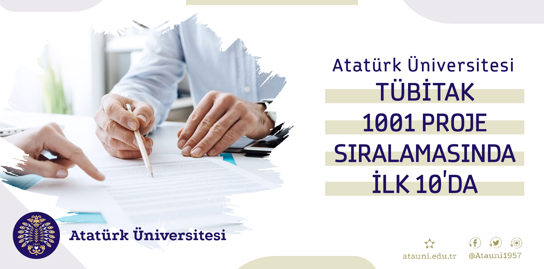 Türkiye Bilimsel ve Teknolojik Araştırma Kurumu (TÜBİTAK) bünyesinde yer alan Araştırma Destek Programları Başkanlığı (ARDEB) 2021 Yılı 1. Dönem 1001 Projelerinin Bilimsel Değerlendirme Sonuçları açıklandı. Bu sonuçlara göre Atatürk Üniversitesi, kabul edilen 6 projesiyle 81 üniversite arasında 10. sırada yer aldı.