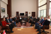 Rektör Yardımcıları ve Genel Sekreteri ile birlikte Rektör Çakmak’ı makamında ziyaret eden Rektör Çomaklı, kardeş üniversite olan Erzurum Teknik Üniversitesine yeniden atanan Bülent Çakmak’ı tebrik ederek çalışmalarında muvaffakiyetler diledi.