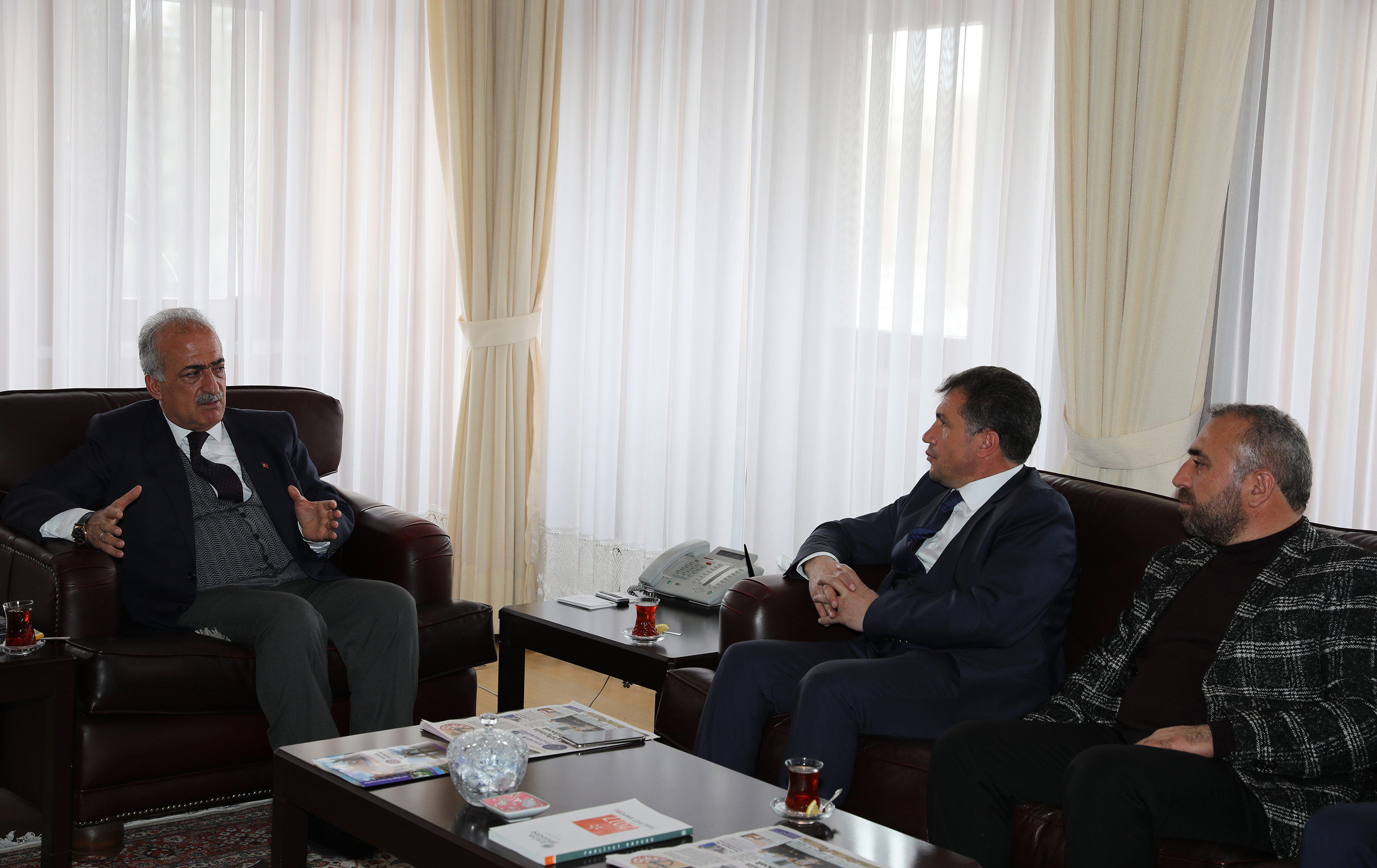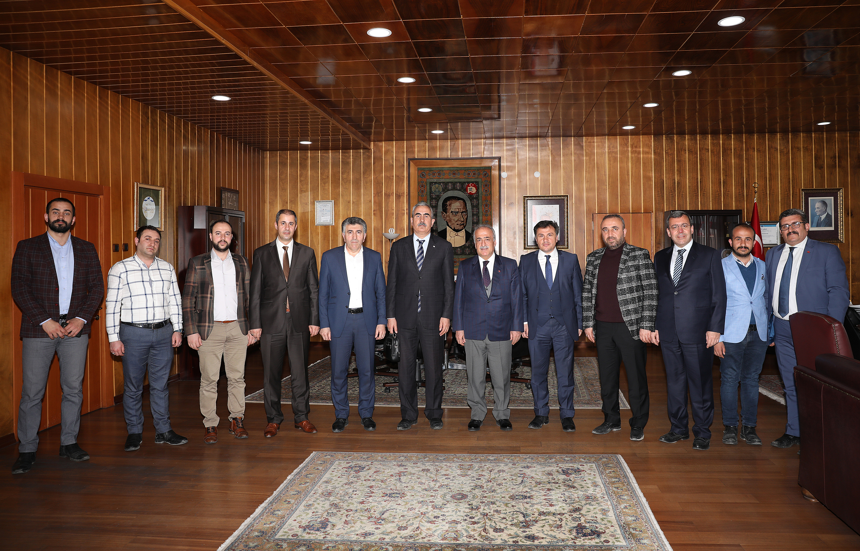 Müstakil Sanayici ve İş Adamları Derneği (MÜSİAD) Erzurum Şube Başkanı Fuat Demir ve yönetim kurulu üyeleri Atatürk Üniversitesi Rektörü Prof. Dr. Ömer Çomaklı’yı ziyaret etti.