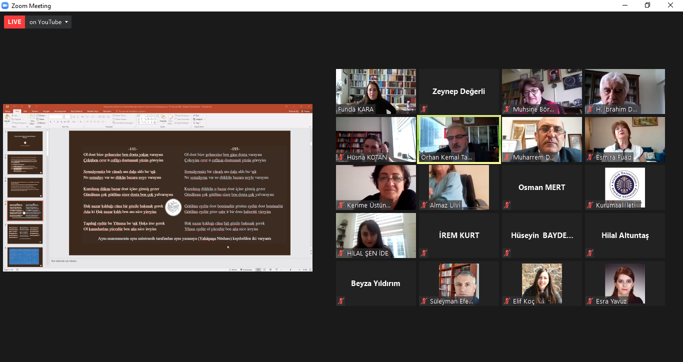 Türk Dil Kurumu tarafından desteklenen, Atatürk Üniversitesi Edebiyat Fakültesi Türk Dili ve Edebiyatı Bölümü, Çağdaş Türk Lehçeleri ve Edebiyatları Bölümü ile Türkiyat Araştırmaları Enstitüsünün iş birliğiyle 10-11 Haziran 2021 tarihlerinde çevrim içi platformda Uluslararası Yunus Emre ve Dünden Bugüne Türkçe Sempozyumu düzenlendi.