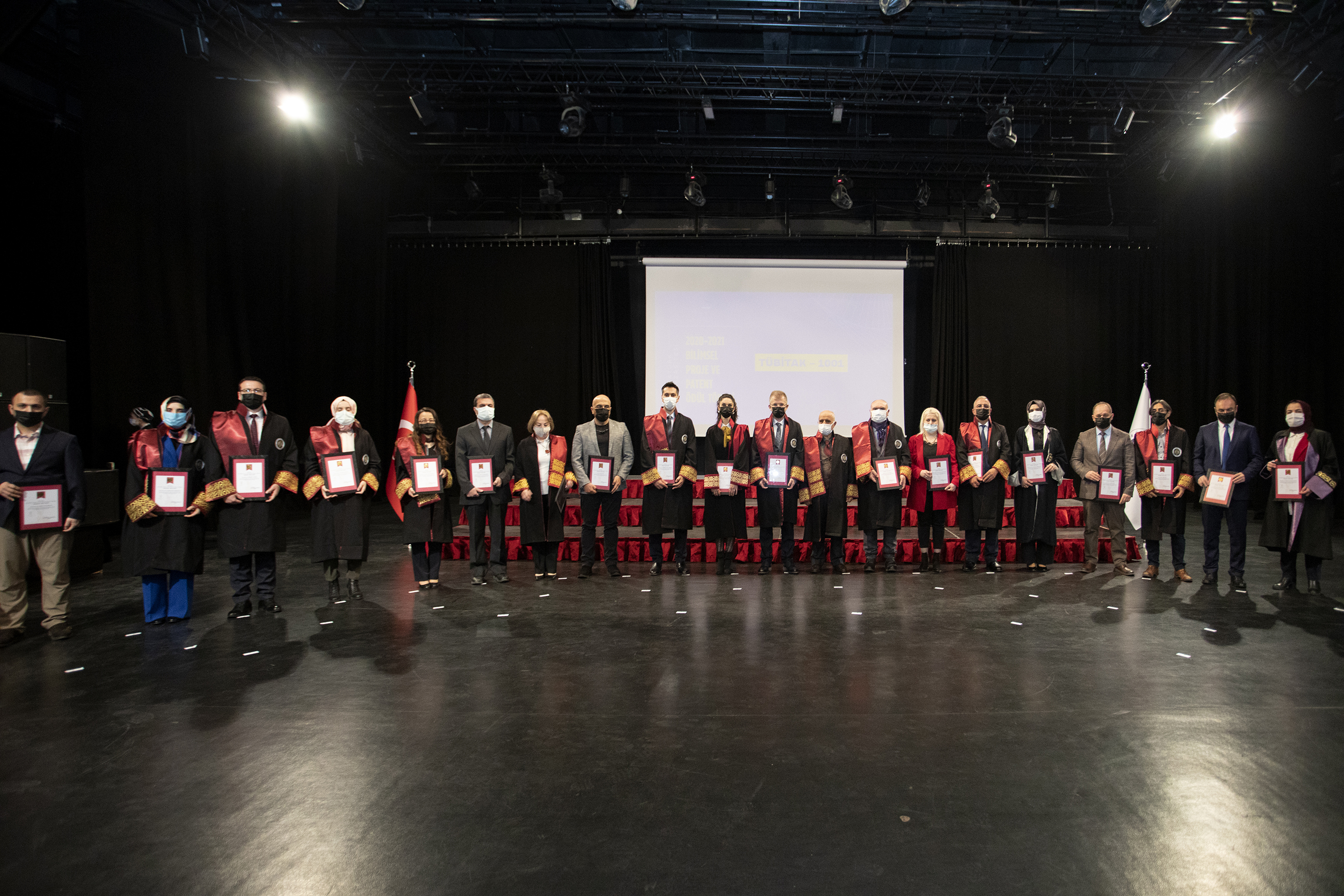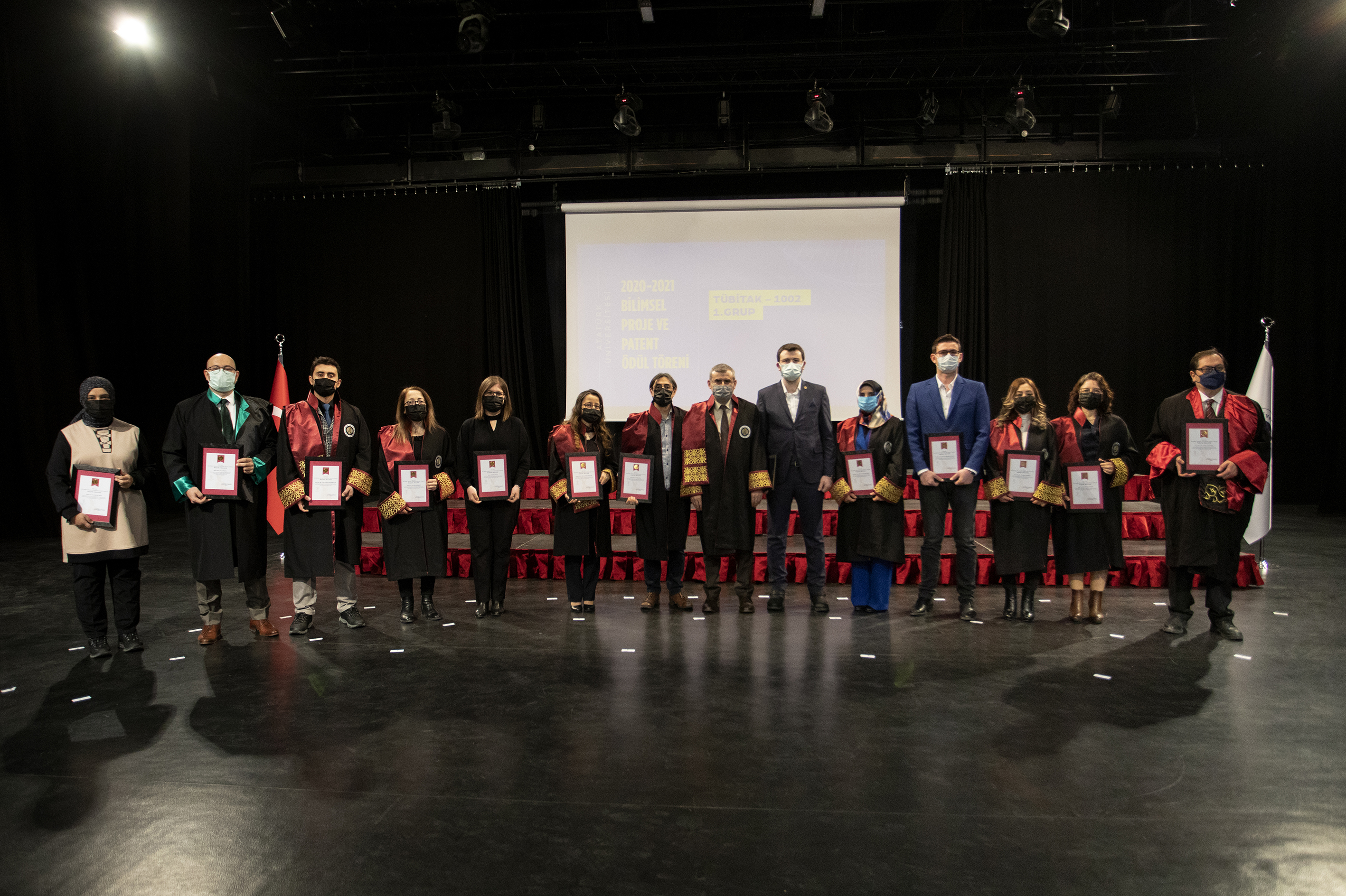 Daha sonra TEYDEB-1505- TÜBİTAK-İKİLİ İŞBİRLİĞİ- DAP- TÜSEB- TAGEM- TÜBİTAK-3501 - TÜBİTAK-1005 Proje türlerinde ödül alan proje yürütücülerine Rektör Yardımcısı Prof. Dr. Hüseyin Özer, TÜBİTAK-1001 Proje türünde ödül alan proje yürütücülerine Rektör Yardımcısı Prof. Dr. Selahattin Çelebi, TÜBİTAK-1002 Proje türünde ödül alan 1. Grup proje yürütücülerine Rektör Yardımcısı Prof. Dr. Mustafa Sözbilir, TÜBİTAK-1002 Proje türünde ödül alan 2. Grup proje yürütücülerine Rektör Yardımcısı Prof. Dr. Ayşe Bayrakçeken Yurtcan, 2020-2021 yılları Ulusal ve Uluslararası seviyede Patent türünde ödül alan öğretim elemanlarına ise Genel Sekreter Doç. Dr. Şendoğan Karagöz ödüllerini takdim etti.