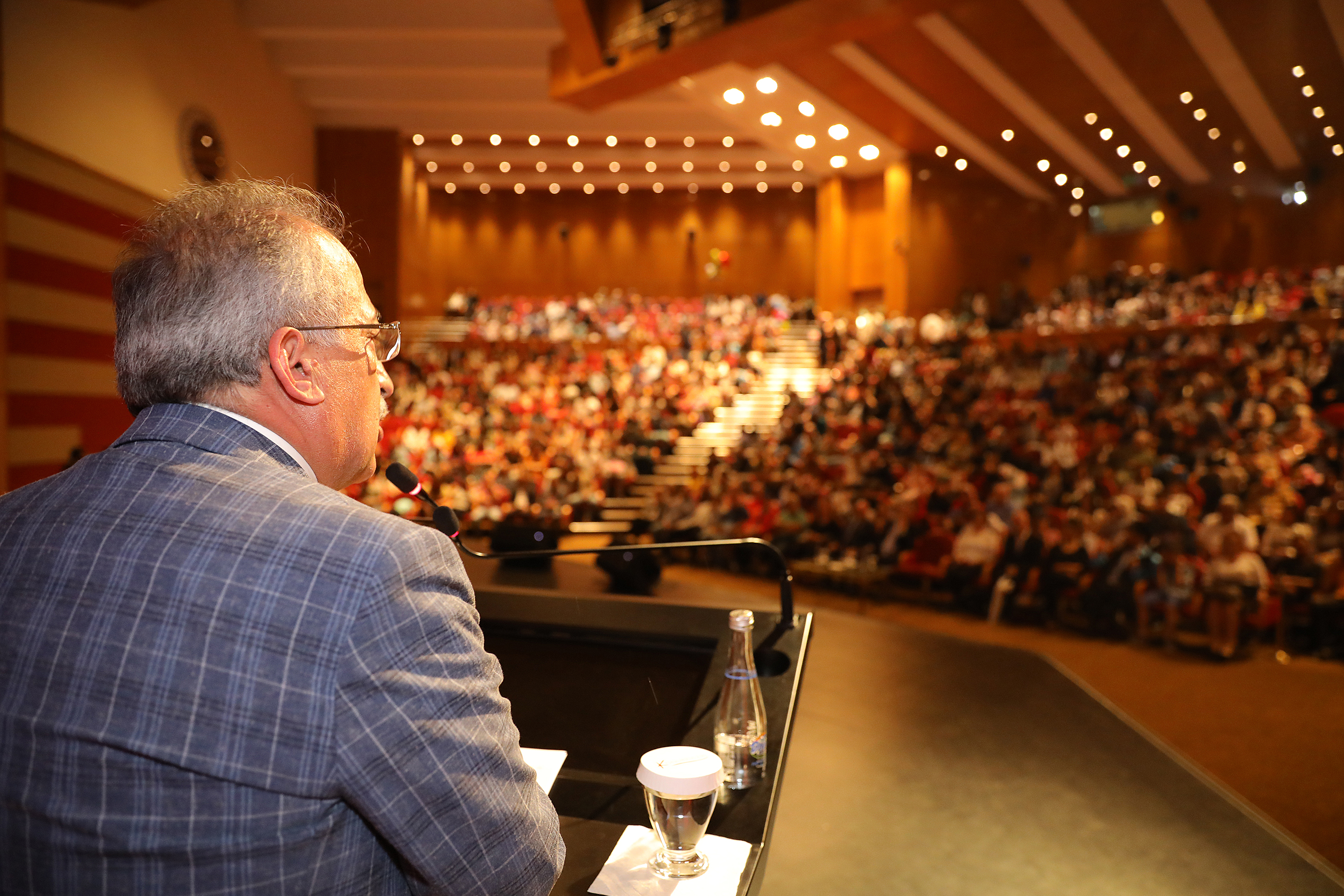 Yeni YÖK vizyonu ışığında başlatılan ve ülkemizin yükseköğretim ilkeleri doğrultusunda ilerleyen Yeni Nesil Üniversite Tasarım ve Dönüşüm Projesi kapsamında, mezun öğrencilerin destekleri, akademik ve idari personelin emekleri ve çabalarıyla Atatürk Üniversitesinin önünde çok güzel bir geleceğin olduğunu dile getiren Rektör Prof. Dr. Ömer Çomaklı, 4 yıllık eğitim ve öğretimin sonunda yetişen öğrencilerimizin en büyük mimarının öğrencilerin kıymetli aileleri ile değerli akademisyenlerimiz olduğunu vurguladı.