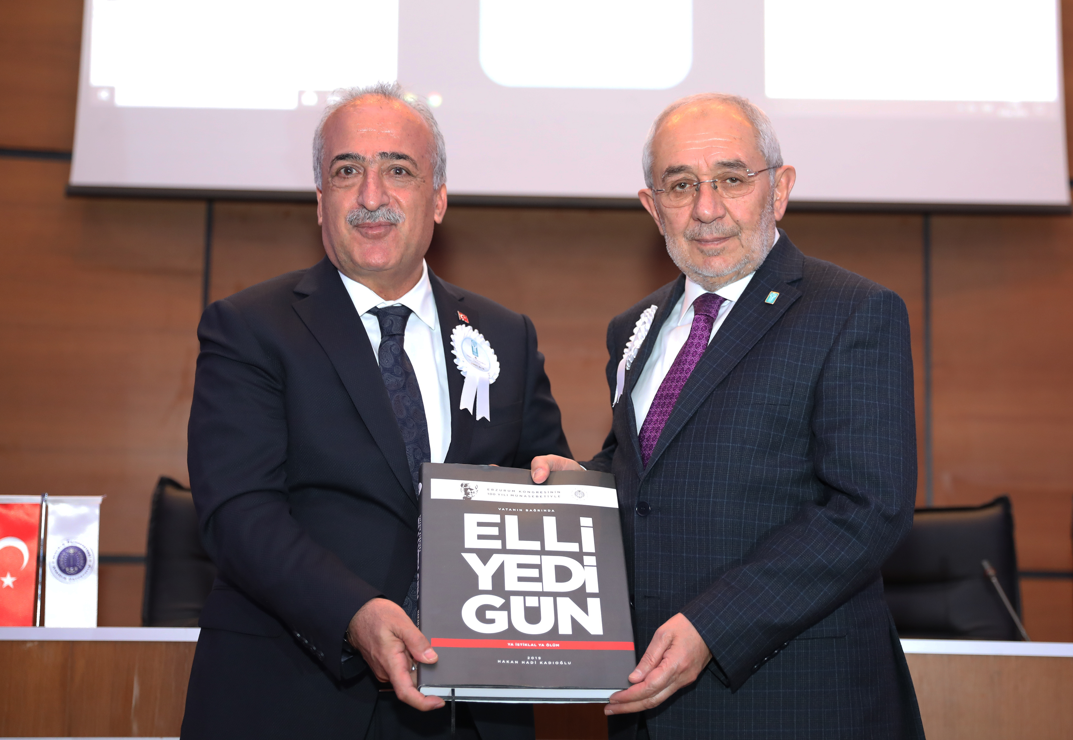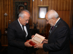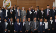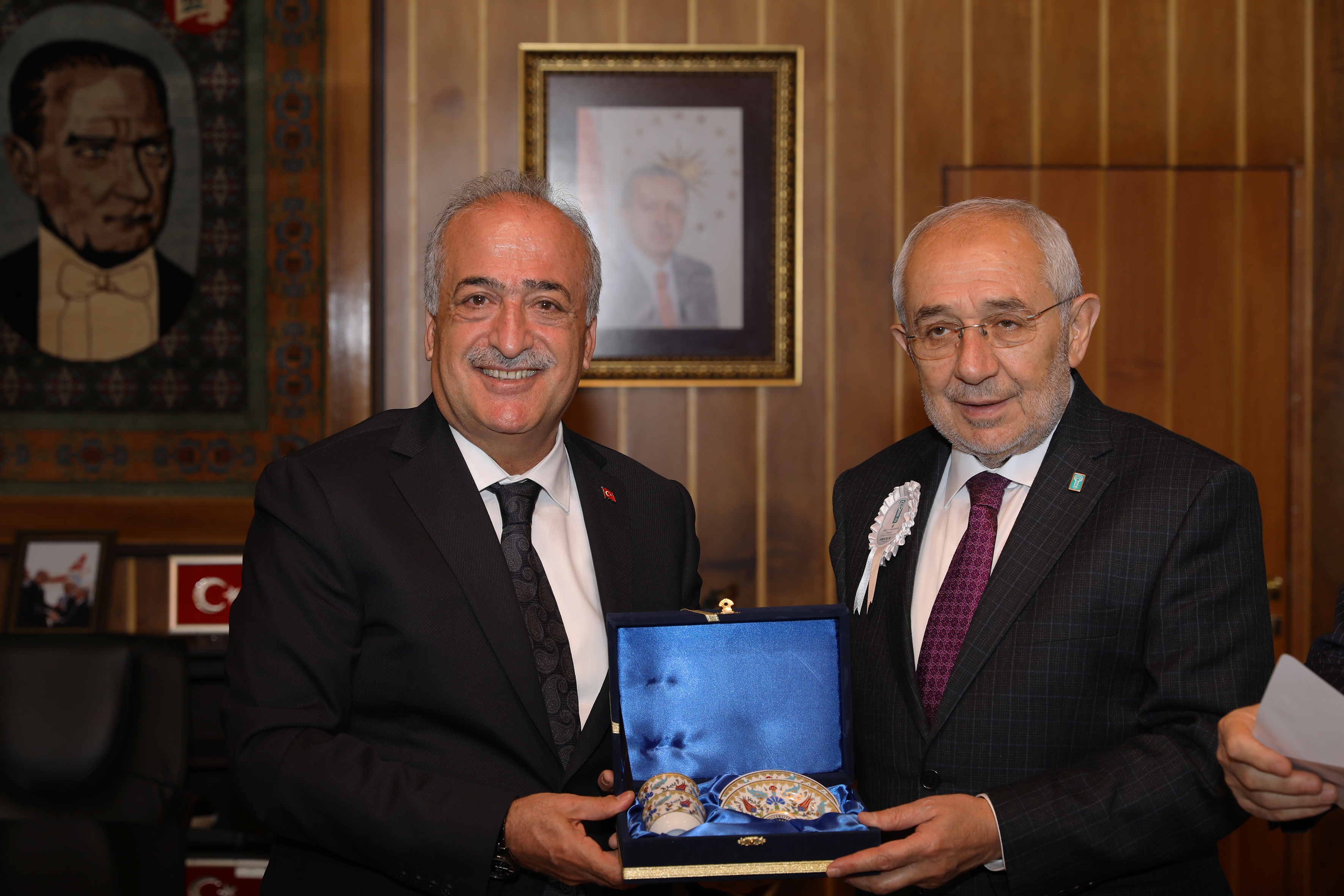 Ziyaretten ve programa ev sahipliği yapmaktan duyduğu memnuniyeti dile getiren Rektör Çomaklı konuklarıyla bir süre sohbet ettikten sonra Ekrem Erdem’e, el yazması Kur’an-ı Kerim ve çeşitli hediyeler takdim etti.