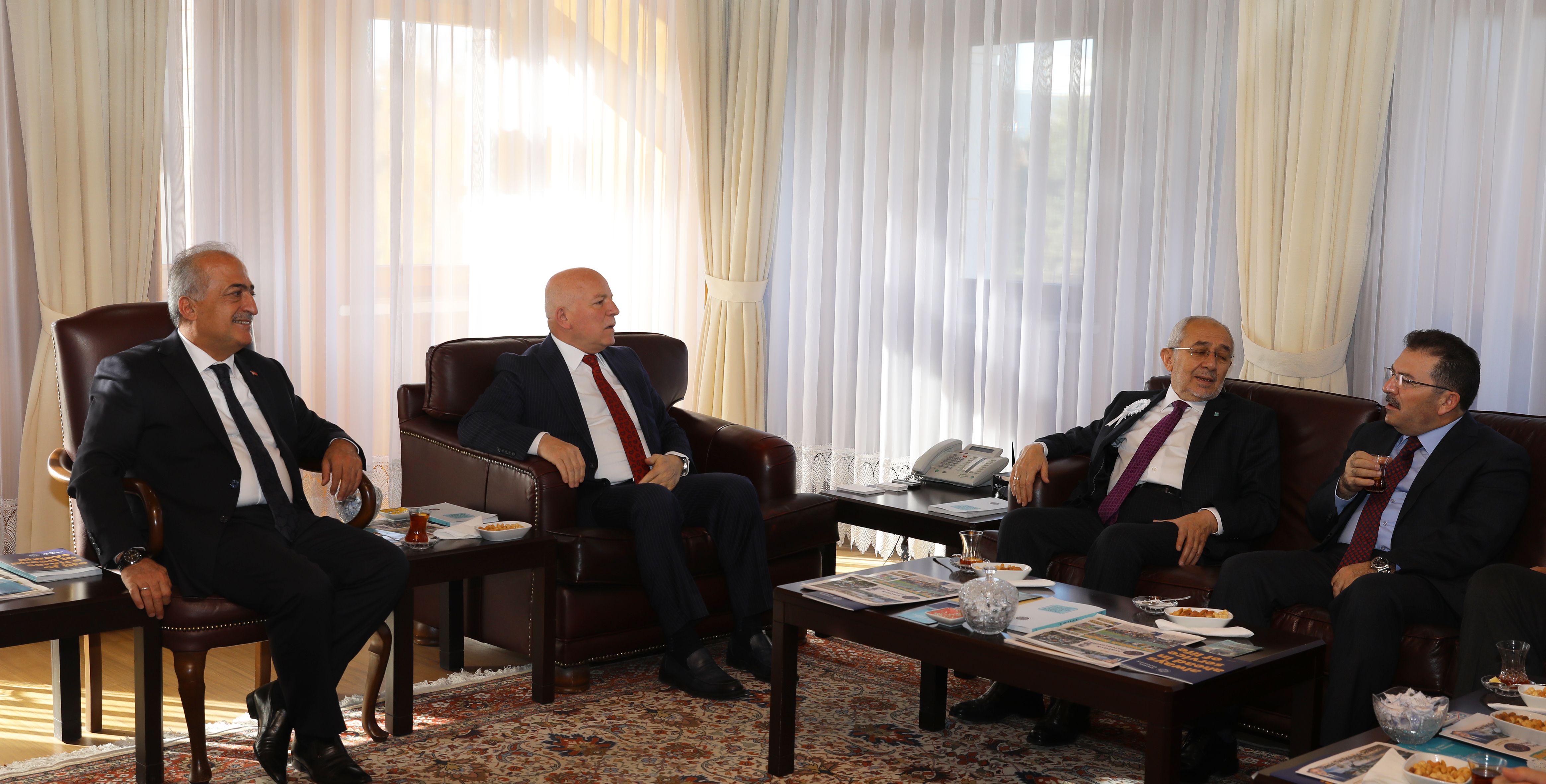 Atatürk Üniversitesi Rektörü Prof. Dr. Ömer Çomaklı’nın ev sahipliğinde gerçekleşen 6. İstişare ve Değerlendirme Toplantısı öncesinde, Türkiye Dil ve Edebiyat Derneği Genel Başkanı Ekrem Erdem, Rektör Prof. Dr. Ömer Çomaklı’yı makamında ziyaret etti.