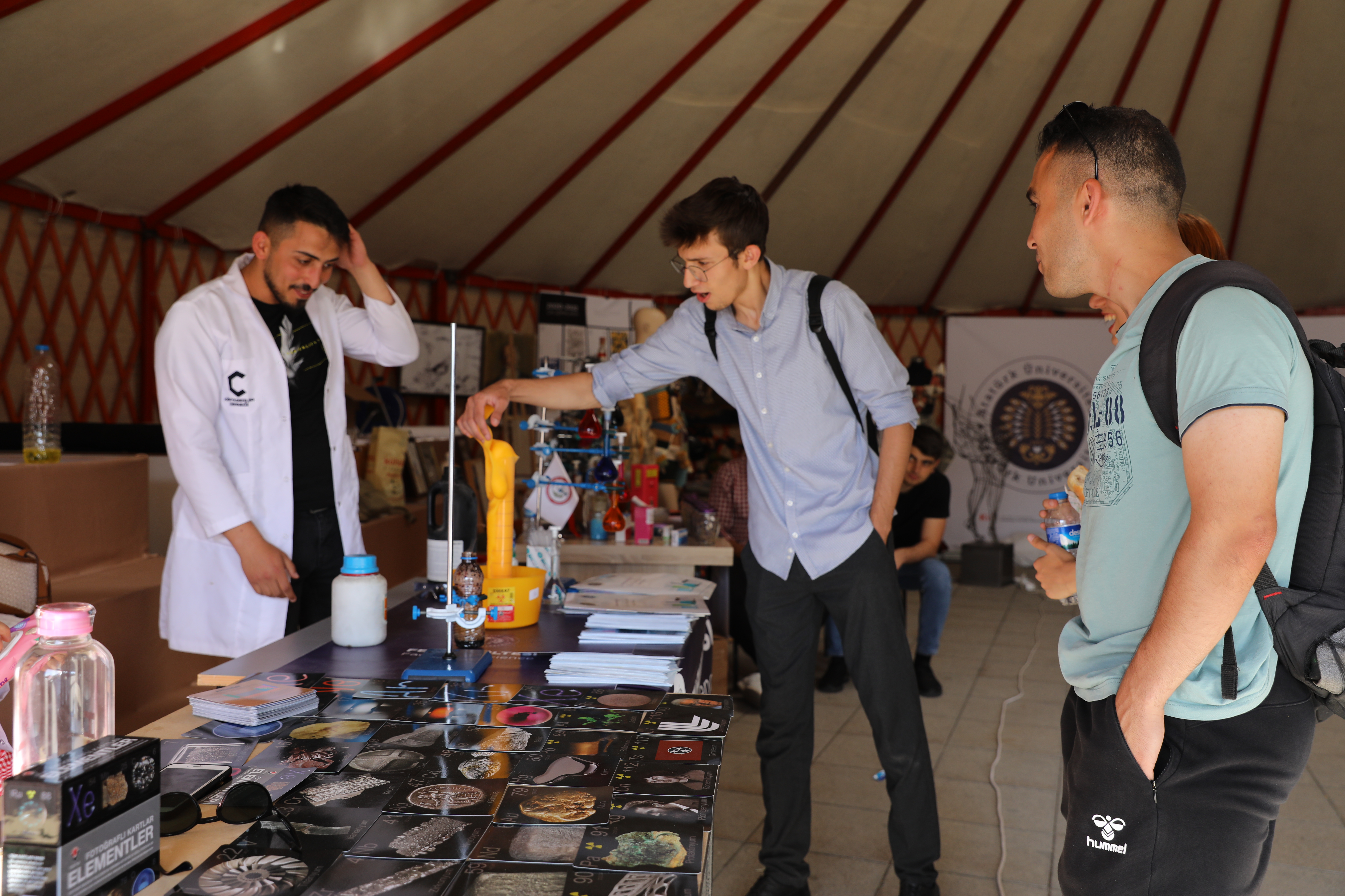Her gün farklı etkinliklerin gerçekleştirildiği tanıtım günlerinde, Güzel Sanatlar Fakültesi öğrencileri çizdikleri birbirinden güzel resimlerle ilgi odağı olurken Fen Fakültesi Kimya Bölümü ise yaptığı deneylerle ziyaretçilere görsel şölen yaşatıyor.