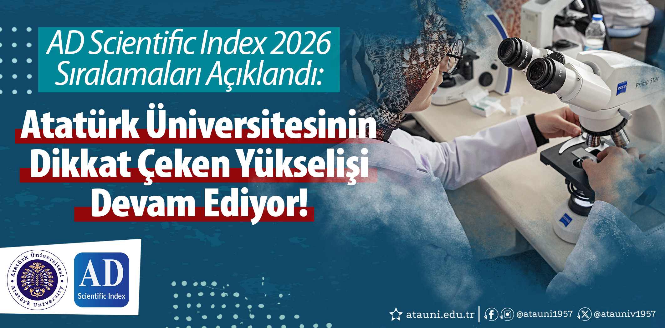 Atatürk Üniversitesi Rektörü Prof. Dr. Ahmet Hacımüftüoğlu, elde edilen başarıya ilişkin yaptığı değerlendirmede şu ifadeleri kullandı: “Bilimsel üretkenliğe, araştırma performansına ve uluslararası görünürlüğe dayalı bağımsız sıralamalarda üniversitemizin her yıl daha yukarılara çıkması, köklü geçmişimizin ve güçlü akademik kadromuzun bir sonucudur. Atatürk Üniversitesi olarak, bilime yön veren ve topluma değer katan çalışmalara imza atmaya devam ediyoruz. Bu başarı, tüm akademik ve idari personelimizin, öğrencilerimizin ve araştırmacılarımızın ortak emeğidir. Hedefimiz, bu ivmeyi daha da yukarı taşıyarak Atatürk Üniversitesini dünyada ilk 500 yükseköğretim kurumları arasına yerleştirmektir.”