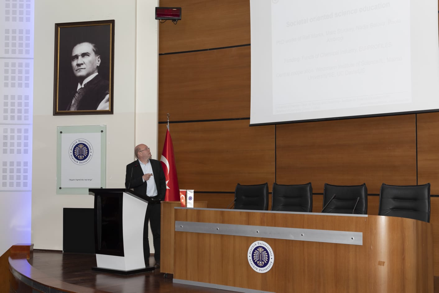 Bremen Üniversitesinin lisansüstü eğitim yapısı ve anlayışından bahseden Prof. Dr. Eilks, öncelikle makale tabanlı doktora tezlerinin özelliklerini anlattı. Farklı pek çok ülkeden uluslararası doktora öğrencileri ile olan çalışmalarını tanıtan Eilks, Türkiye’de henüz yeni yeni fikir sahibi olunan makale tabanlı doktora tezi yaklaşımıyla ilgili aydınlatıcı bilgiler sundu. Türkiye’deki üniversitelerde makale tabanlı doktora tezi konusunu çok çabuk kavrayabilecek bir akademik birikimin olduğunu belirten Prof. Dr. Eilks, ortak çalışma ve projelerle bu konu üzerinde kısa sürede mesafe kat edileceğini söyledi.