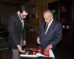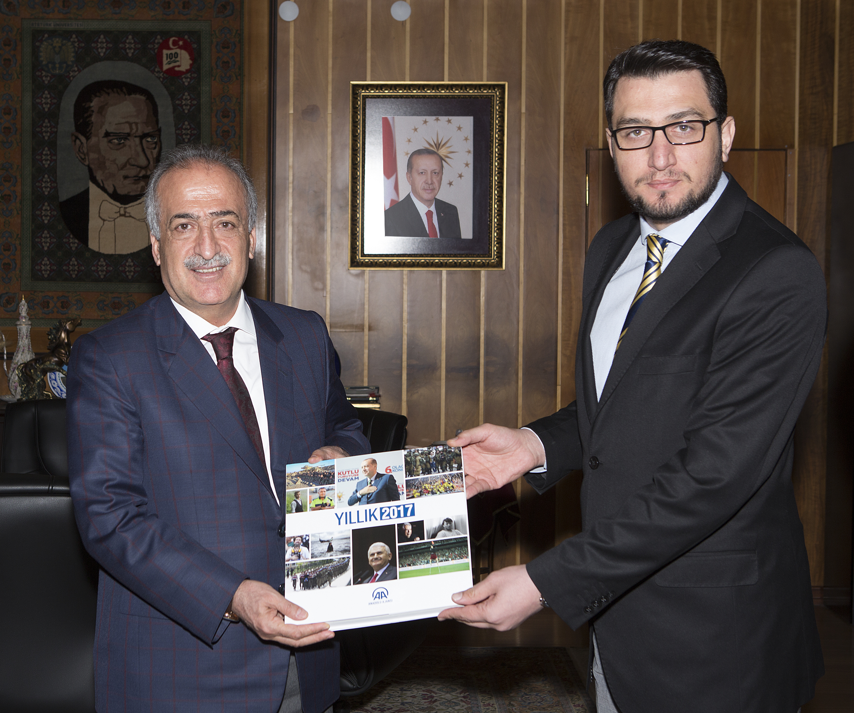Anadolu Ajansı Erzurum Bölge Müdürü Hüseyin Yahya Şekerci, Atatürk Üniversitesi Rektörü Prof. Dr. Ömer Çomaklı’yı makamında ziyaret ederek, Anadolu Ajansı’nın 2017 yıllığını hediye etti.