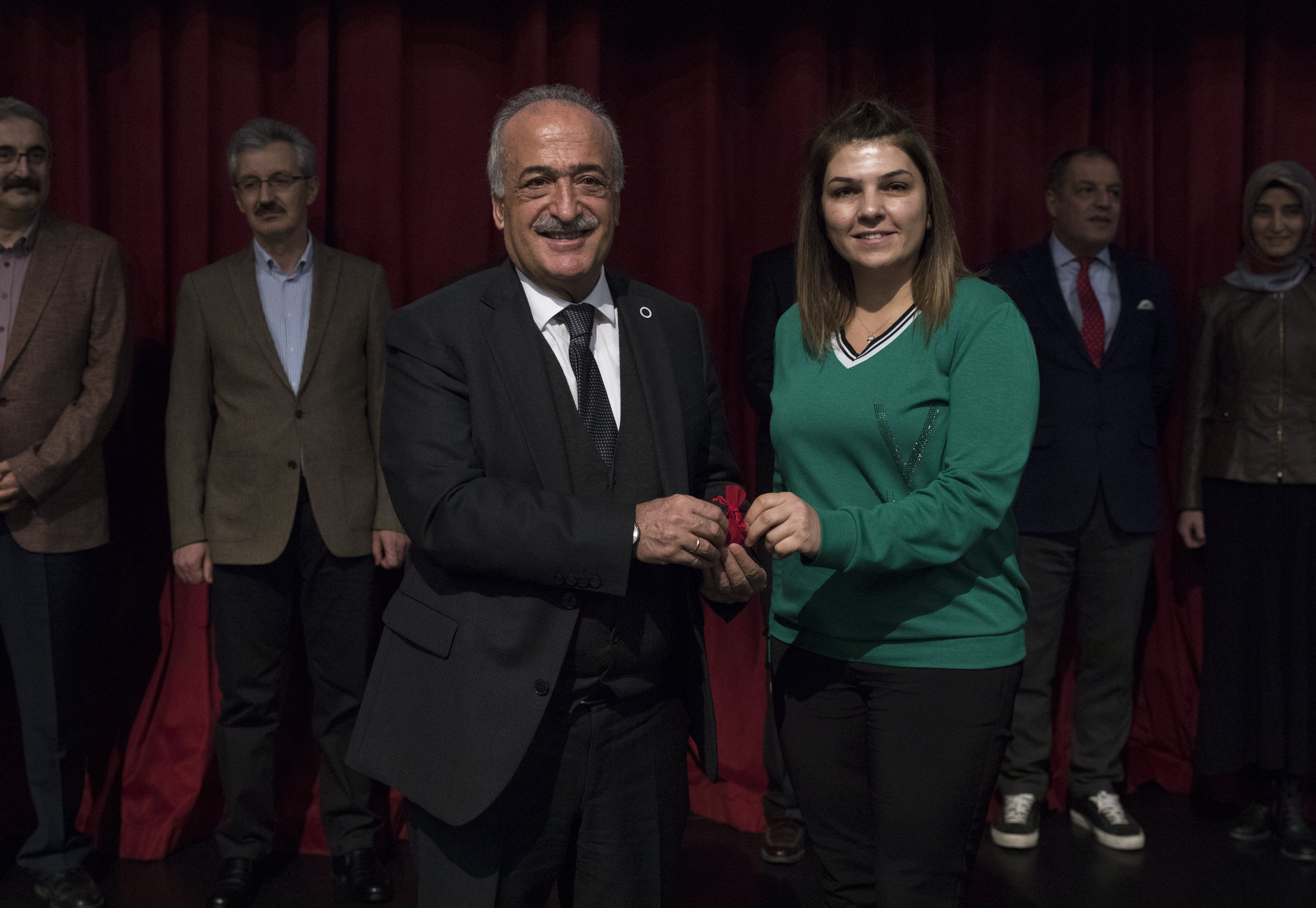 Yayın, patent, proje ve firmaları ile ön plana çıkan akademisyenlere 15 Temmuz Milli İrade Salonunda düzenlenen törende ödüllerini takdim eden Rektör Çomaklı, araştırma temelli çalışmalarından ve başarılarından dolayı akademisyenleri tebrik etti.