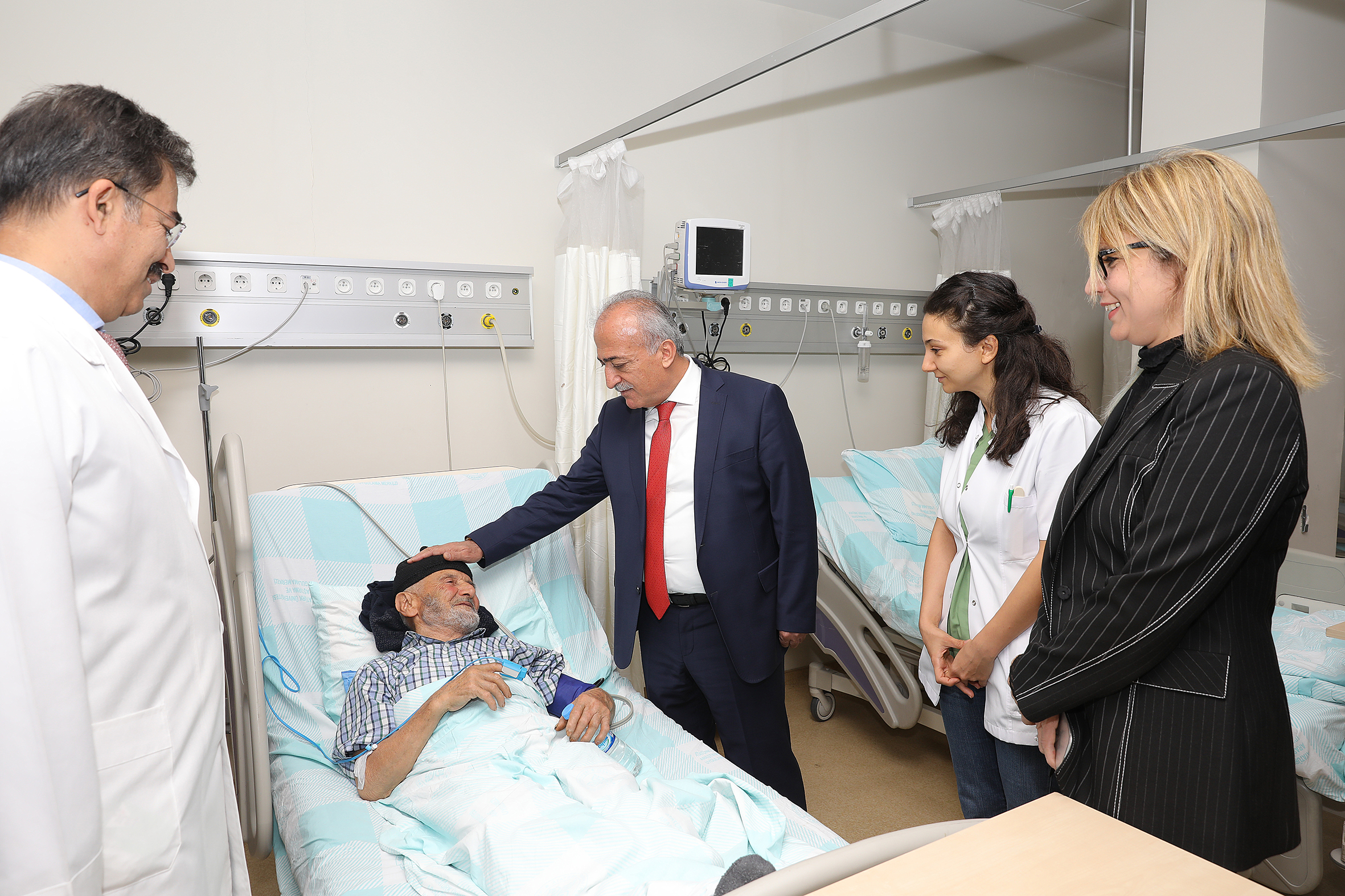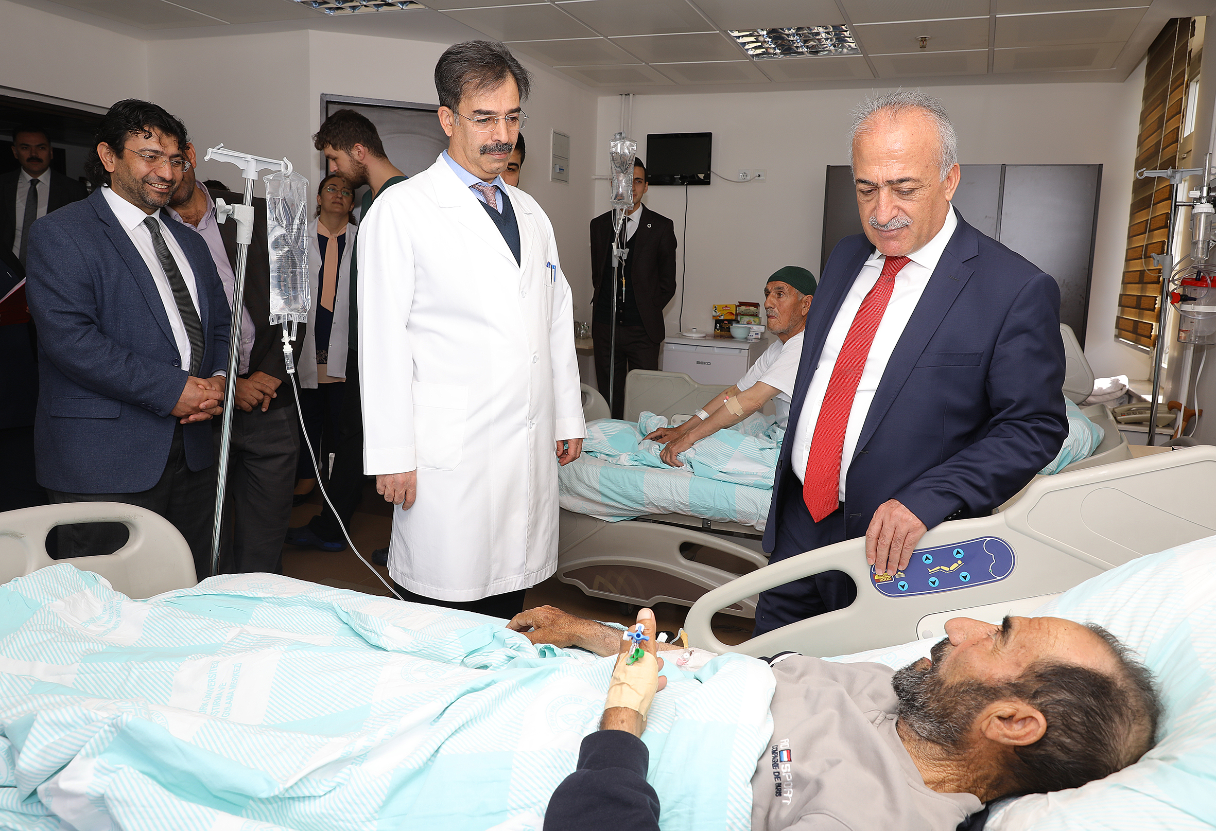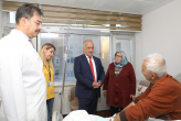 Bin 500 yatak kapasitesiyle Türkiye'nin en büyük hastanelerinden biri olan Araştırma Hastanesinde çevre il ve ülkelerden şifa bulmak için gelen hastaları ziyaret eden Rektör Çomaklı, hastane hakkındaki dilek ve görüşleri yerinde dinledi.