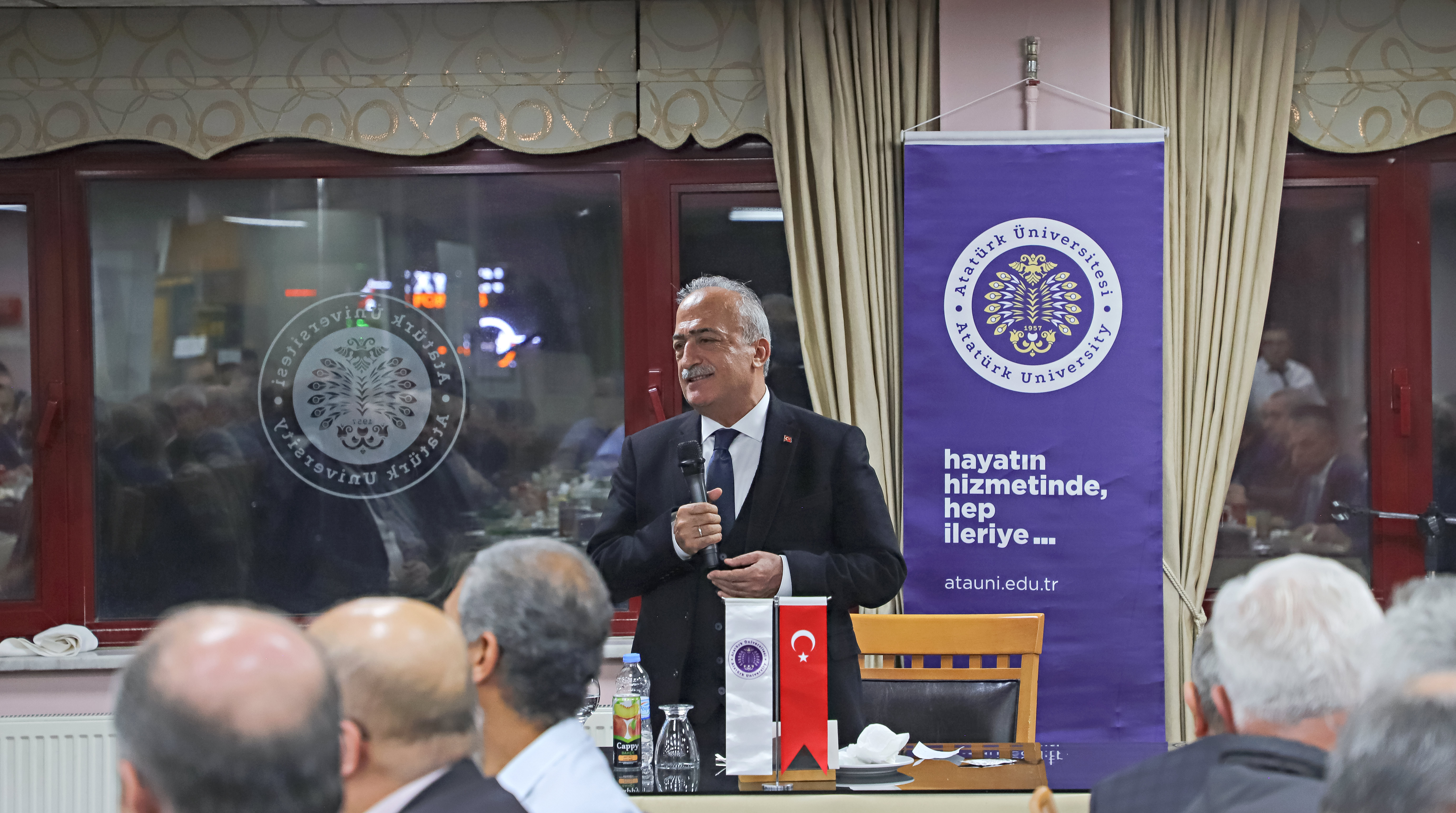 Köklü bir altyapıya sahip olan Atatürk Üniversitesinin kurulduğu günden itibaren gerçekleştirdiği bilimsel faaliyetlerle önemli bir konuma sahip olduğunun ve proje, patent, yayın, Ar-Ge ve toplumsal fayda faaliyetlerinde her zaman önde olmayı gaye edindiğinin altını çizen Rektör Çomaklı: “Yaptığınız çalışmalarla bu gayemizi hayata geçirdiğinizi ve üniversitemizi bilimsel anlamda ileri noktalara taşıdığınızı memnuniyetle belirtmek isterim. Bizler de ‘marifet iltifata tabidir’ düsturuyla elde edilen başarıları hiçbir zaman karşılıksız bırakmıyoruz. Bugün de düzenlediğimiz yemek programıyla hem çalışmalarıyla ortalamanın üzerinde atıf alan öğretim üyelerimizle bir araya gelmek hem de istişare etmek üzere buluştuk. Oldukça rekabetçi bir alan olan bilimsel yayınlarda çalışmalarımızı sürdürüyoruz ancak eser sayımızı daha da çeşitlendirmeli ve çoğaltmalıyız. Bu noktada üniversite yönetimi olarak üzerimize ne düşüyorsa bu zamana kadar yaptığımız gibi bundan sonra da yapmaya devam edeceğiz. Üniversitemizi uluslararası alanda söz sahibi olacak çalışmalarla temsil ettiğiniz için teşekkür ediyor, başarılarınızın devamını diliyorum” şeklinde konuştu.