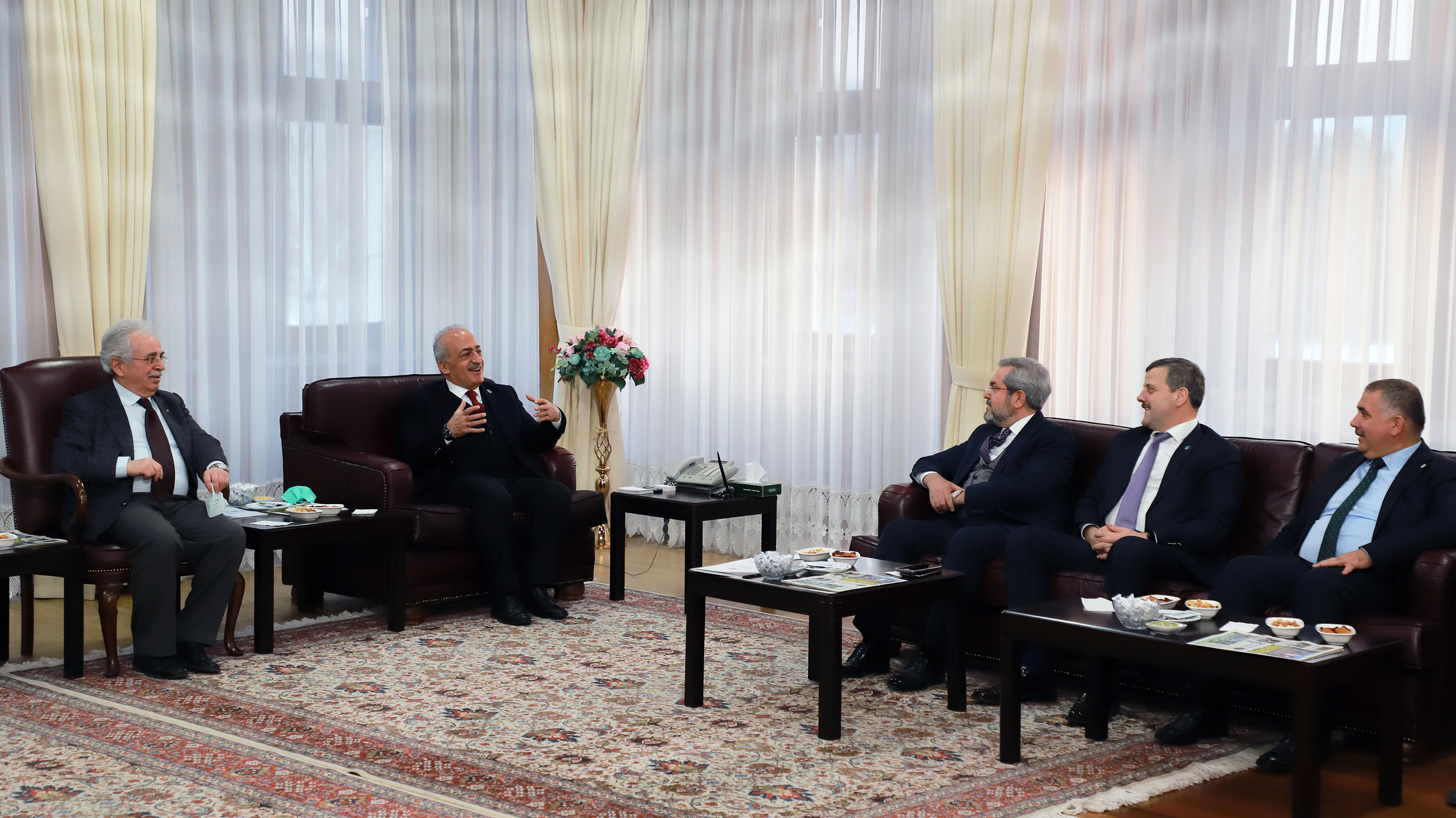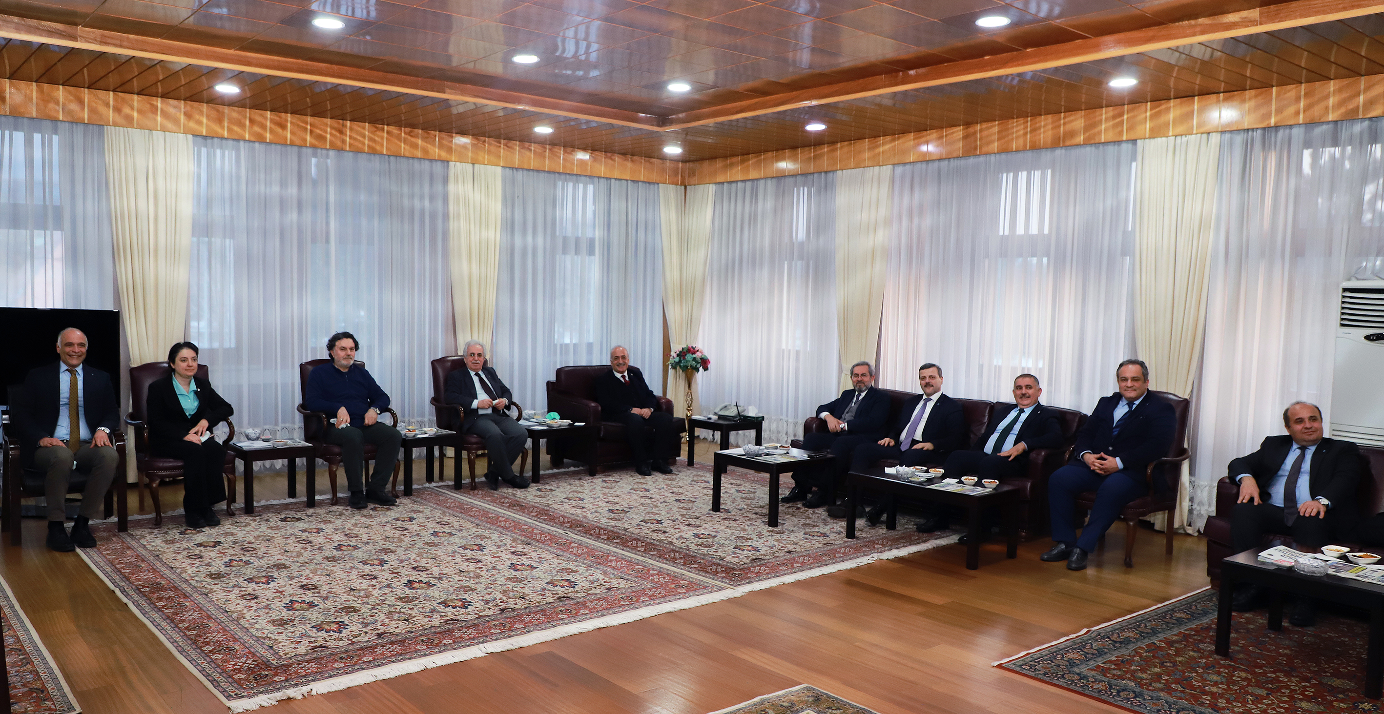 Kurumlararası iletişimin güçlenmesine ve iş birliği kültürünün gelişmesine katkıda bulunmak üzere Erzurum’a gelen Ankara Üniversitesi Rektörü Prof. Dr. Necdet Ünüvar, İstanbul Teknik Üniversitesi Rektörü Prof. Dr. İsmail Koyuncu ve Gazi Üniversitesi Rektörü Prof. Dr. Musa Yıldız ile Yükseköğretim Kurulu (YÖK) Üyesi Prof. Dr. Muammer Yaylalı Atatürk Üniversitesini ziyaret ederek Rektör Prof. Dr. Ömer Çomaklı ile bir araya geldiler.
