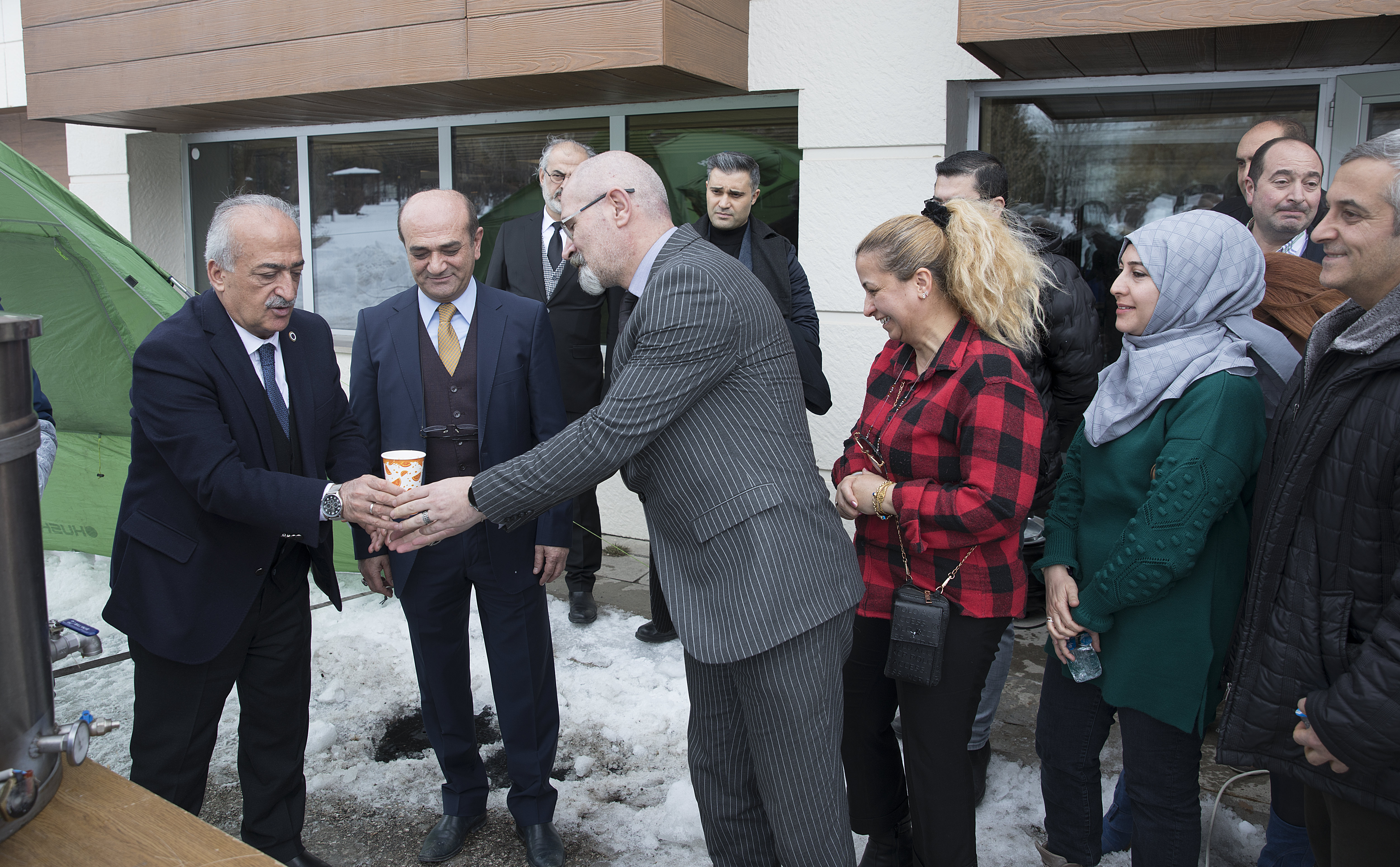 Programın açılış konuşmasını gerçekleştiren Rektör Çomaklı, hayatını kaybeden vatandaşlara rahmet, yaralı olarak kurtulan vatandaşlara ise acil şifalar dileyerek sözlerine başladı. Depremin çok geniş bir coğrafyayı ve çok büyük bir nüfusu etkilediğini belirten Rektör Çomaklı: “Depremler olur olmaz hepimiz can kurtarmaya odaklandık. Onun arkasından hemen bu depremi yaşayan insanlarımızın, insani koşullarda nasıl barındırabileceği, temel ihtiyaçlarının nasıl karşılanabileceği konusunda bütün ülke seferber oldu. Biz de üniversite olarak acil eylem planını hemen hazırladık ve uygulamaya koyduk. Bu kapsamda üniversitemizin ilgili birimlerini harekete geçirerek donanımlı personelimizi, gerekli teçhizatlar eşliğinde uğurladık” dedi.