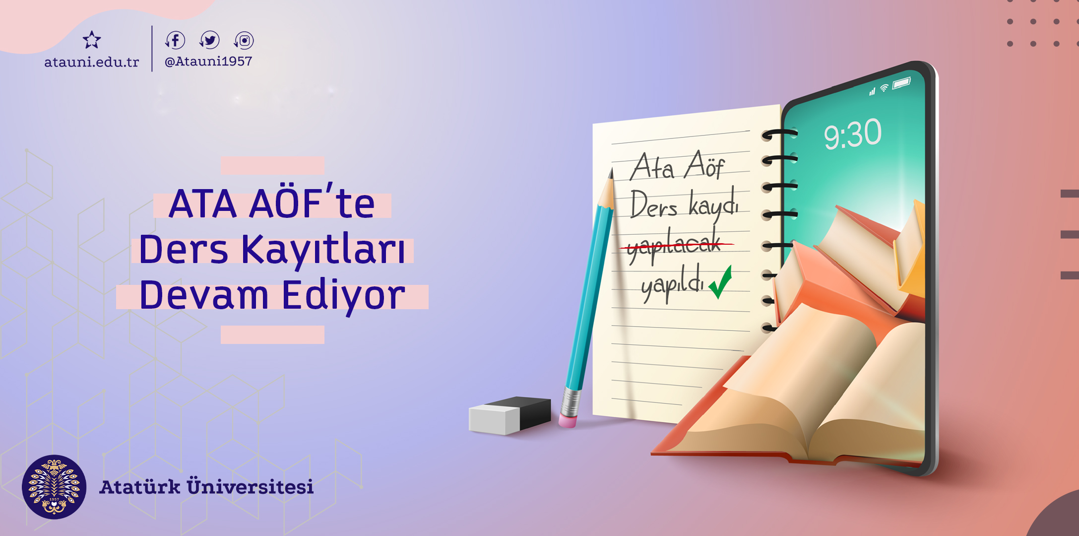 Vermiş olduğu başarılı ve kaliteli örgün eğitimin yanında özellikle pandemi sürecinde yürütmüş olduğu sorunsuz uzaktan eğitim ile de dikkatleri üzerine çeken Atatürk Üniversitesi, Açıköğretim Fakültesiyle de yeni döneme merhaba dedi. Bu kapsamda yeni kayıt yaptıran ve ikinci dönemin materyal ücretini yatıran 1. Sınıf öğrencilerinin bahar yarıyılı ders kayıtları, fakülte tarafından yapılacak. Ara sınıf öğrencileri ise (2, 3 ve 4. Sınıf) belirlenen tarihlerde materyal ücretlerini ödedikten sonra bahar yarıyılı ders kayıtlarını Öğrenci Bilgi Sistemi (OBS) üzerinden kendileri yapacak. Öğrenciler ayrıca, uzaktan eğitimi daha erişilebilir kılmayı sağlamak amacıyla hayata geçirilen ve tüm işlemlerini 3 boyutlu olarak tek bir uygulama üzerinden gerçekleştirecekleri bir dijital ortam olan AtaMeta uygulaması üzerinden ders kayıtlarını yenileyebilecekler.