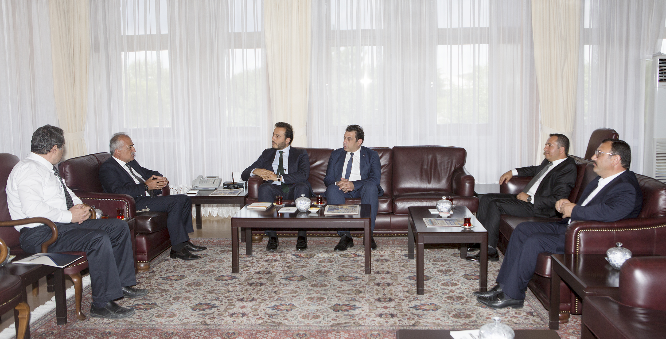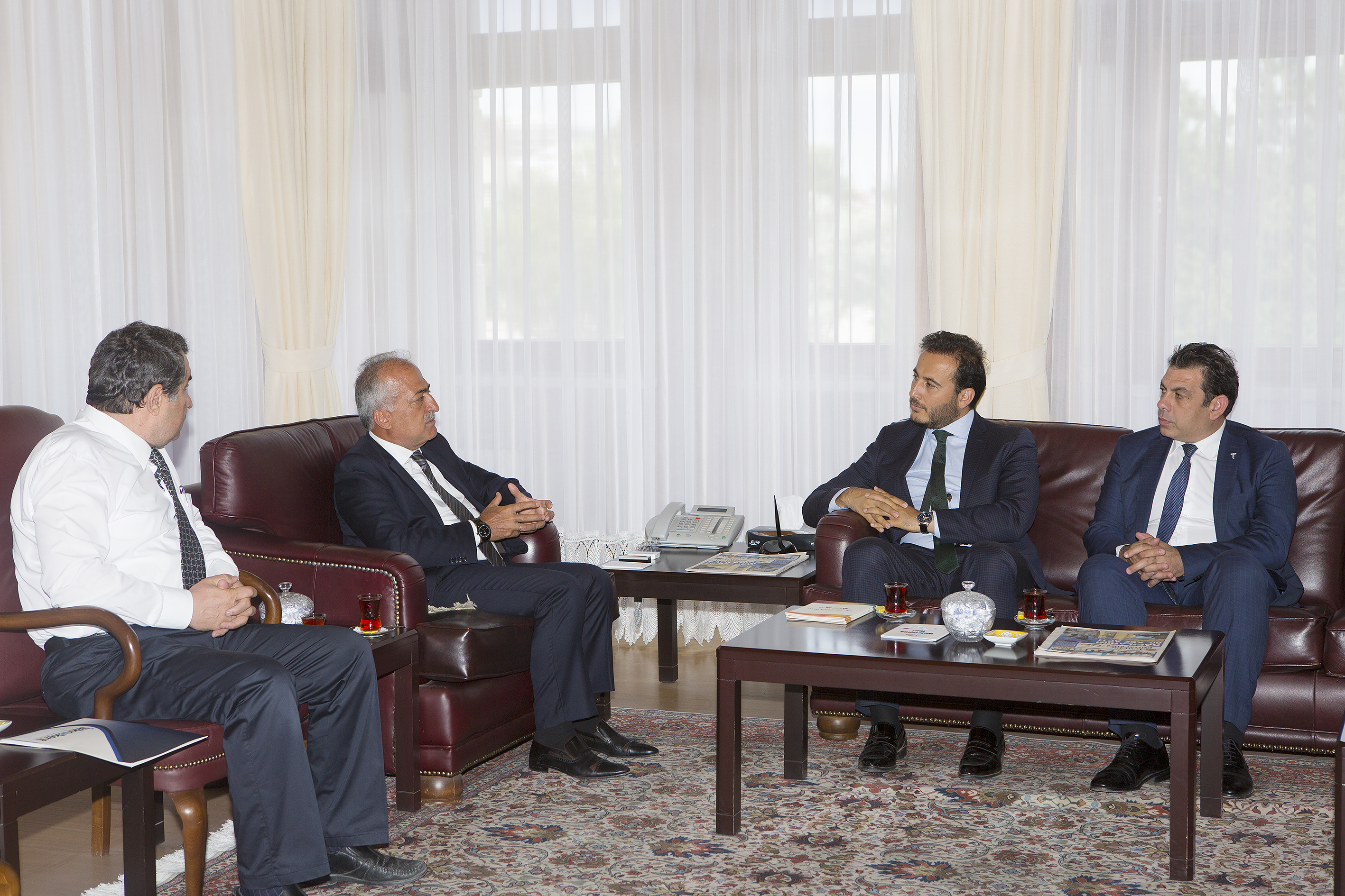 Türkiye Ekonomi Bankası ve Türkiye İhracatçılar Meclisi heyeti Atatürk Üniversitesi Rektörü Prof. Dr. Ömer Çomaklı’yı makamında ziyaret etti.