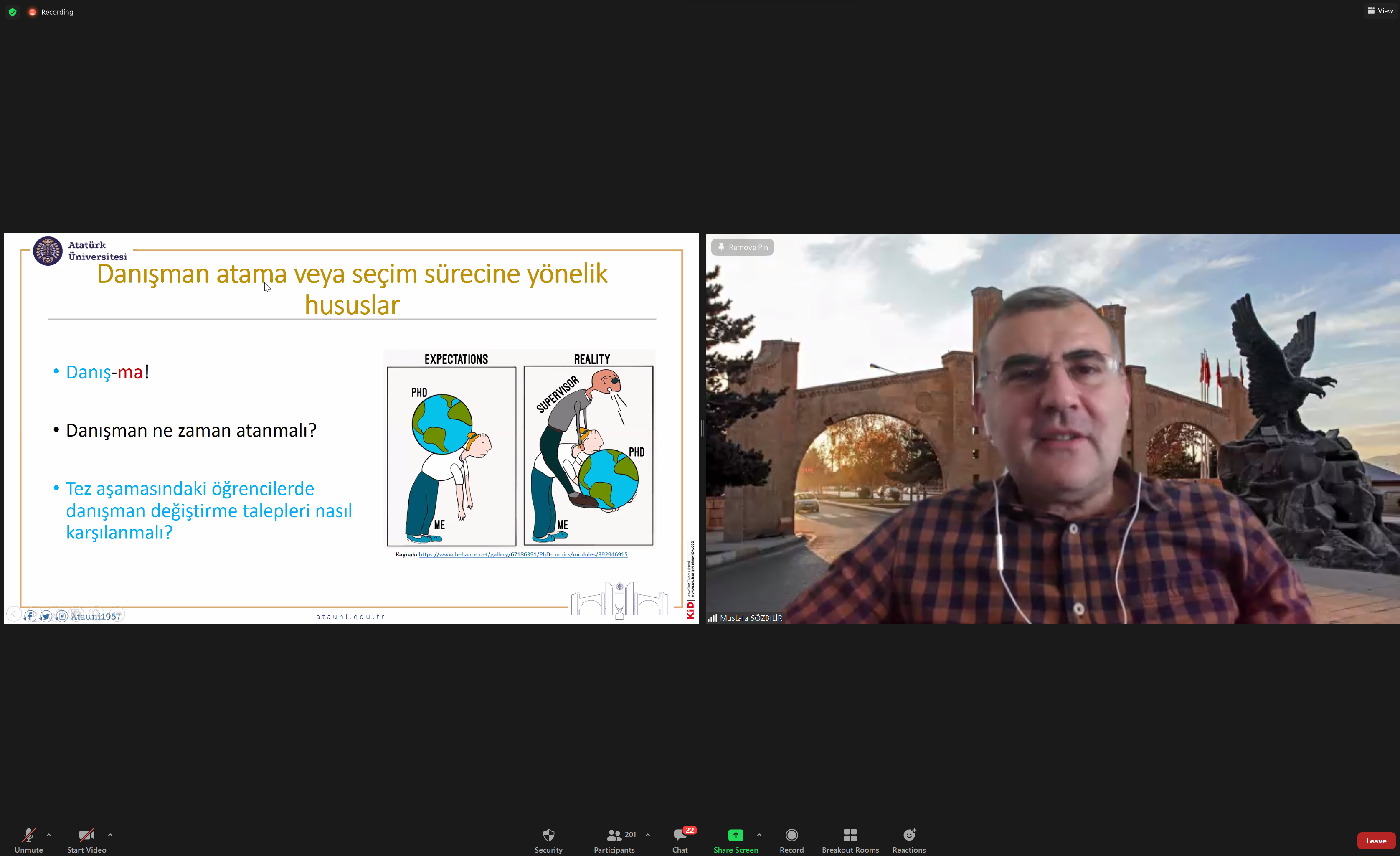 Atatürk Üniversitesi Öğretme ve Öğrenmeyi Geliştirme Uygulama ve Araştırma Merkezi (ATAÖGEM) tarafından çevrimiçi olarak düzenlenen Lisansüstü Akademik Danışmanlık Eğitimi tamamlandı.