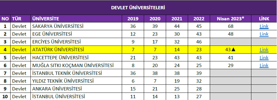 2) Devlet üniversiteleri arasında 2022 yılında 10. sırada olan üniversitemiz bugün itibariyle 4. sıraya,