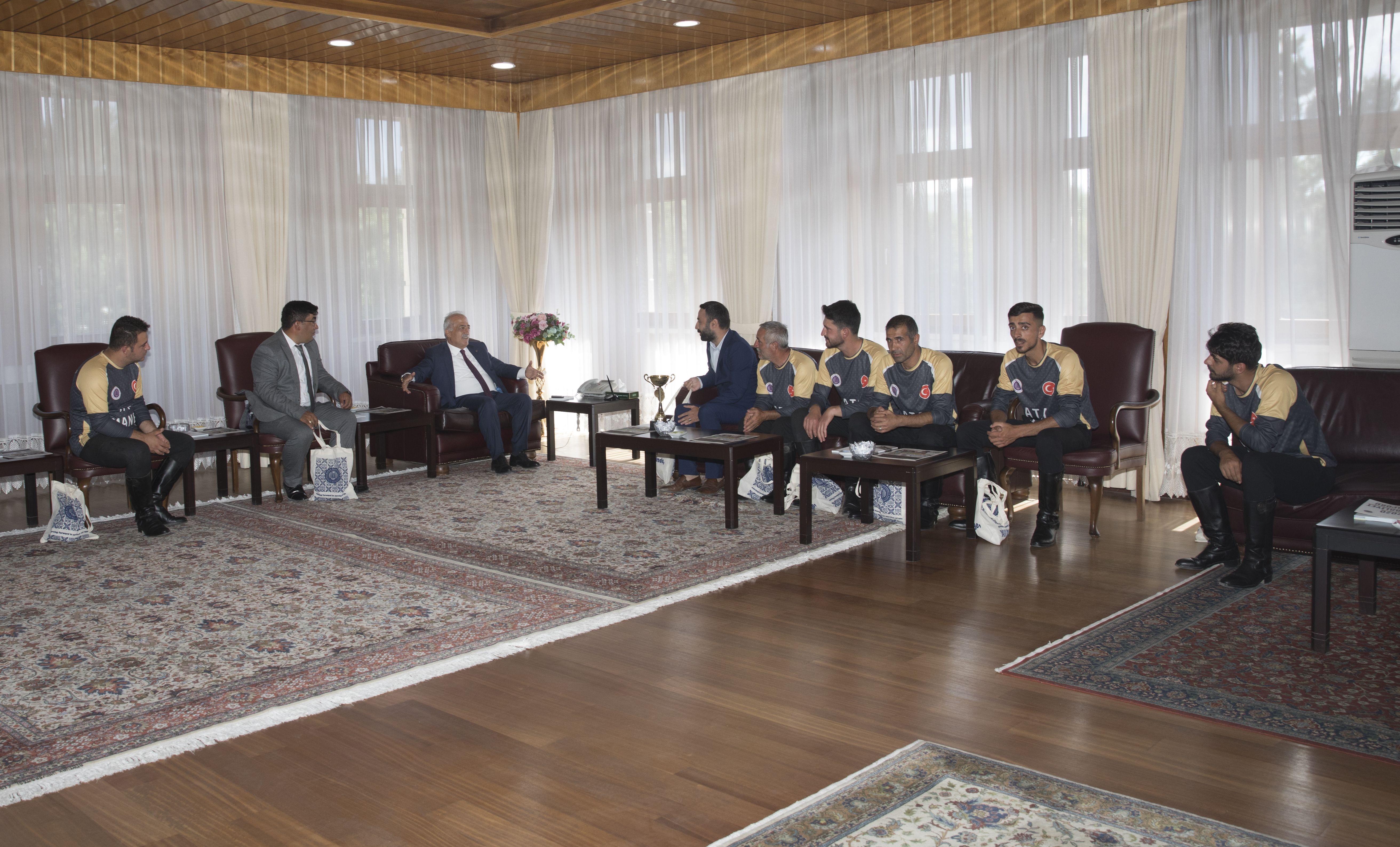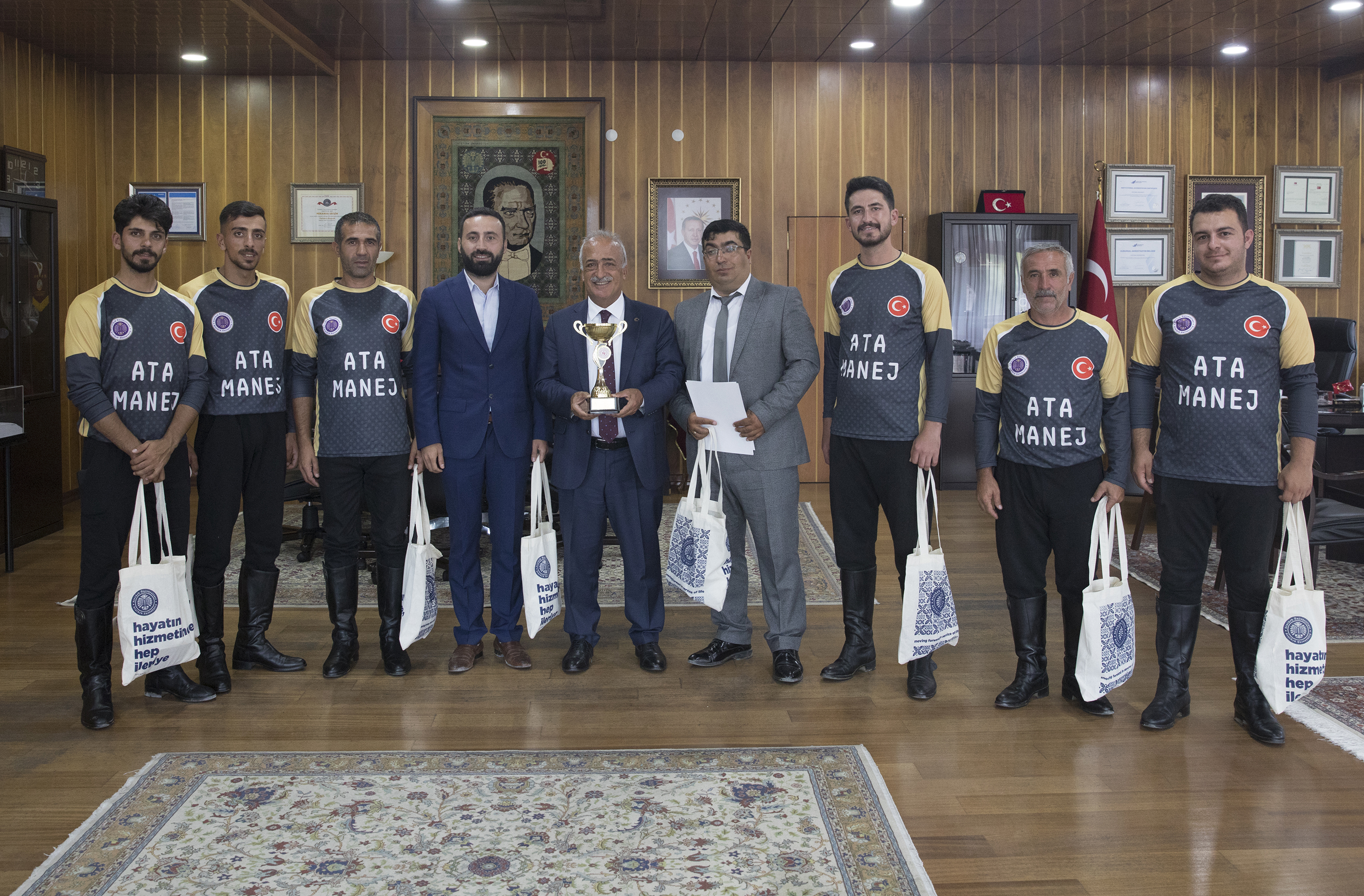 Müsabaka sonrasında Atatürk Üniversitesi Rektörü Prof. Dr. Ömer Çomaklı’yı ziyaret eden Atlı Spor Kulübü Başkanı Dr. Öğr. Üyesi Gökhan Öztürk, yardımcısı Uğur Karcıoğlu ve kulüp sporcuları, kazanılan kupayı Rektör Çomaklı’ya takdim ettiler.
