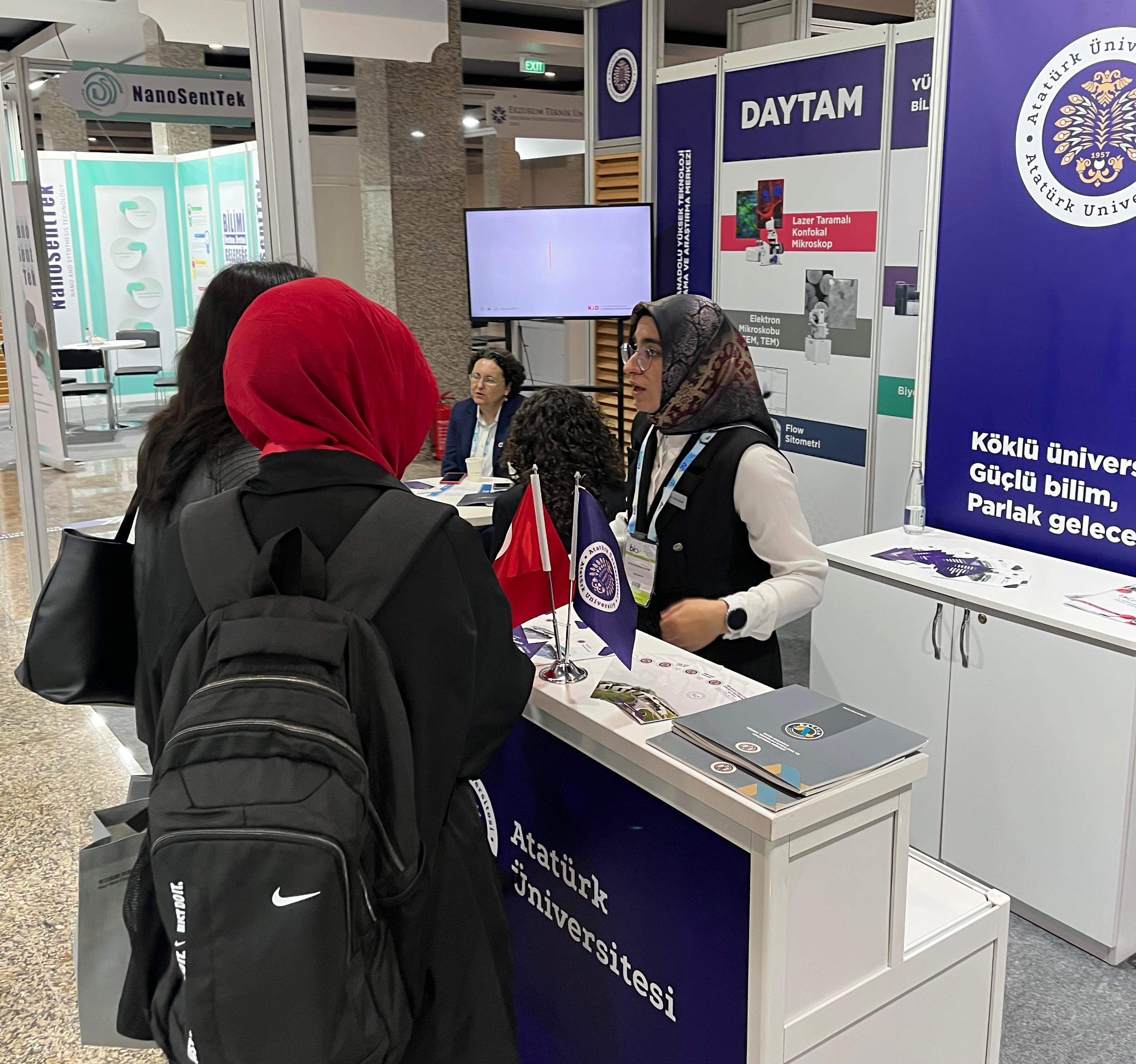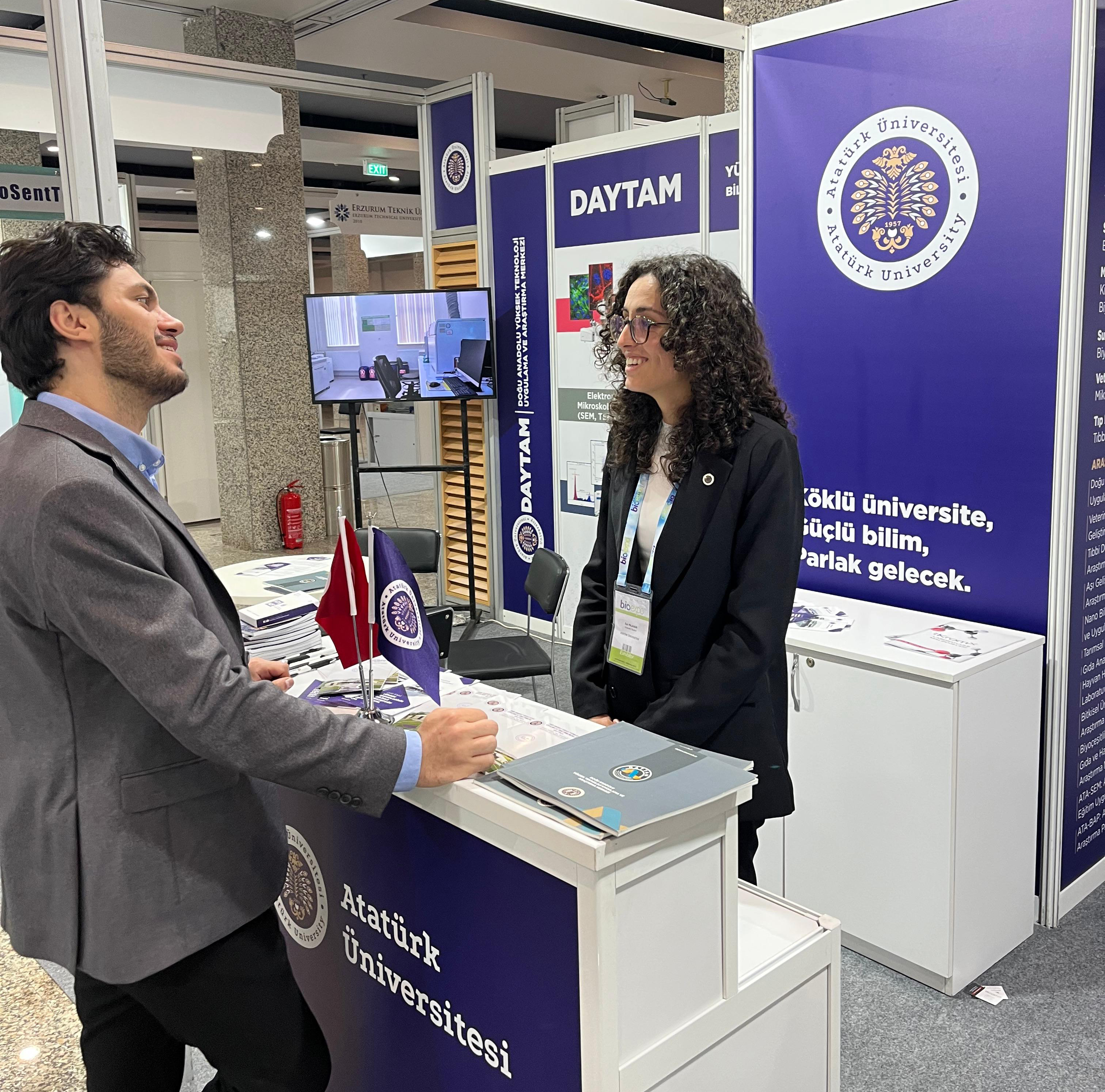 Atatürk Üniversitesi standı, özgün tasarımı, etkileyici sunumları ve görsel içerikleriyle katılımcıların yoğun ilgisini çekti. Fuar boyunca ziyaretçiler, Doğu Anadolu Yüksek Teknoloji Uygulama ve Araştırma Merkezi (DAYTAM) ve ATA Teknoloji Transfer Ofisi (ATA-TTO) tarafından yürütülen araştırma projeleri, cihaz altyapıları ve Ar-Ge olanakları hakkında bilgi aldı.