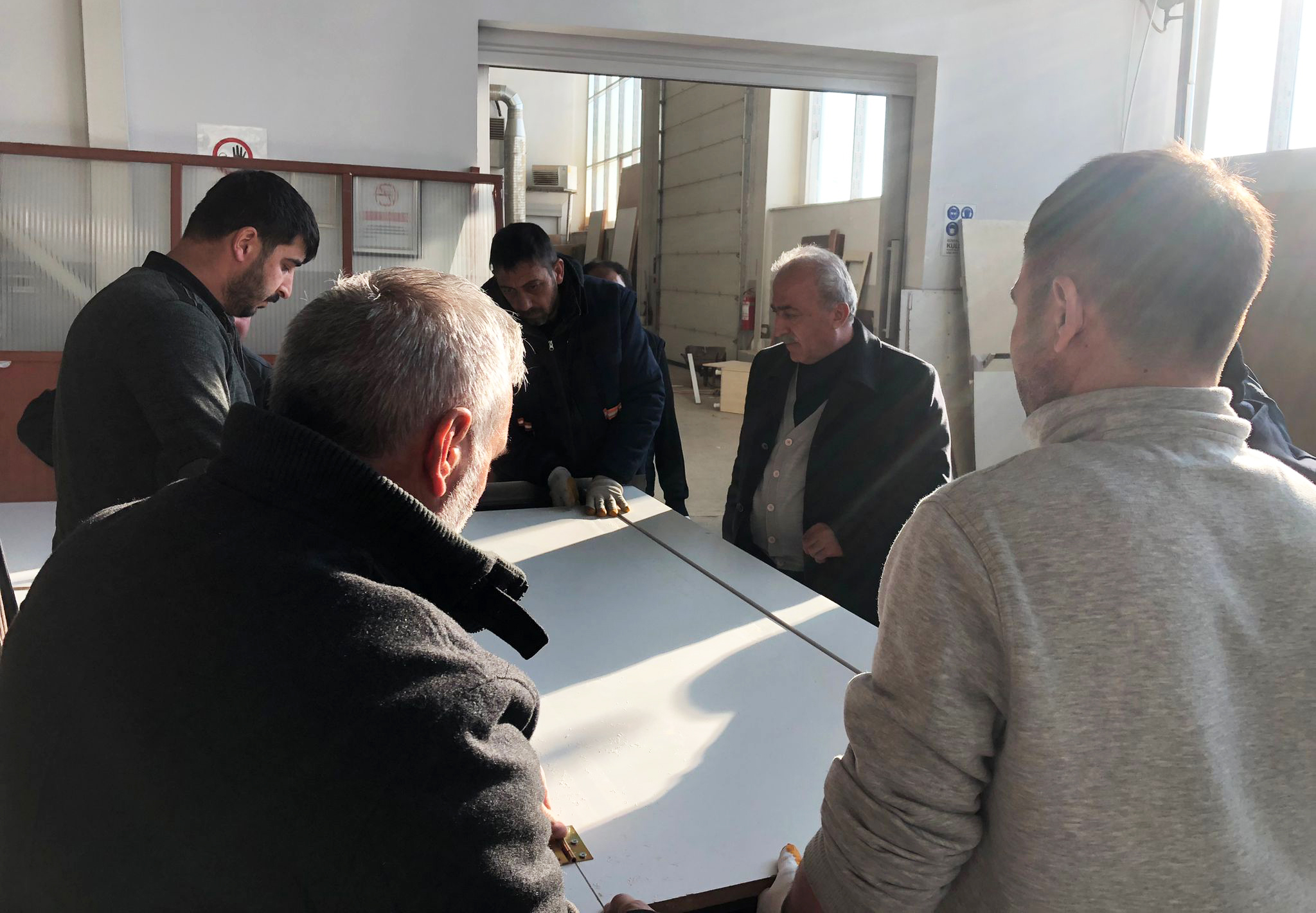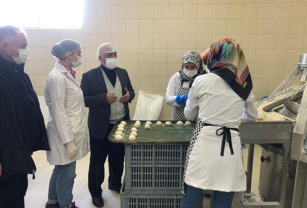 Çalışmaları yerinde incelemek üzere atölyeleri ve ekmek fabrikasını ziyaret eden Rektör Prof. Dr. Ömer Çomaklı, depremzedelerin ihtiyaçları için aralıksız çalışan üniversite personeline de moral desteği verdi.
