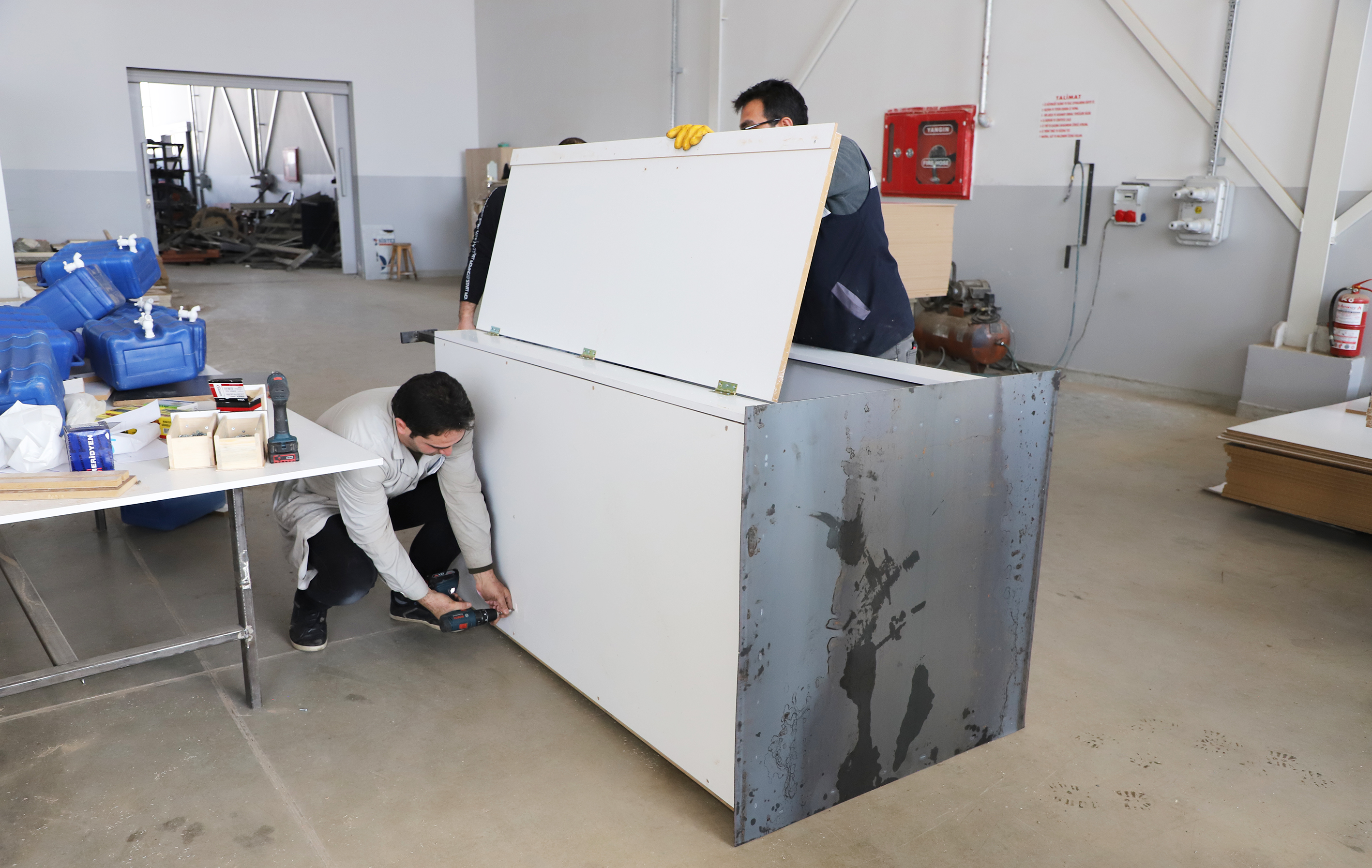 Erzurum’da bulunan hayırsever kişi, kurum ve kuruluşların da desteğiyle, tamamı Atatürk Üniversitesi atölyelerinde üretilen ve içerisinde elektrik ile su tesisatı da bulunan seyyar tuvaletler, deprem bölgesine yine Atatürk Üniversitesi tarafından ulaştırılıyor.