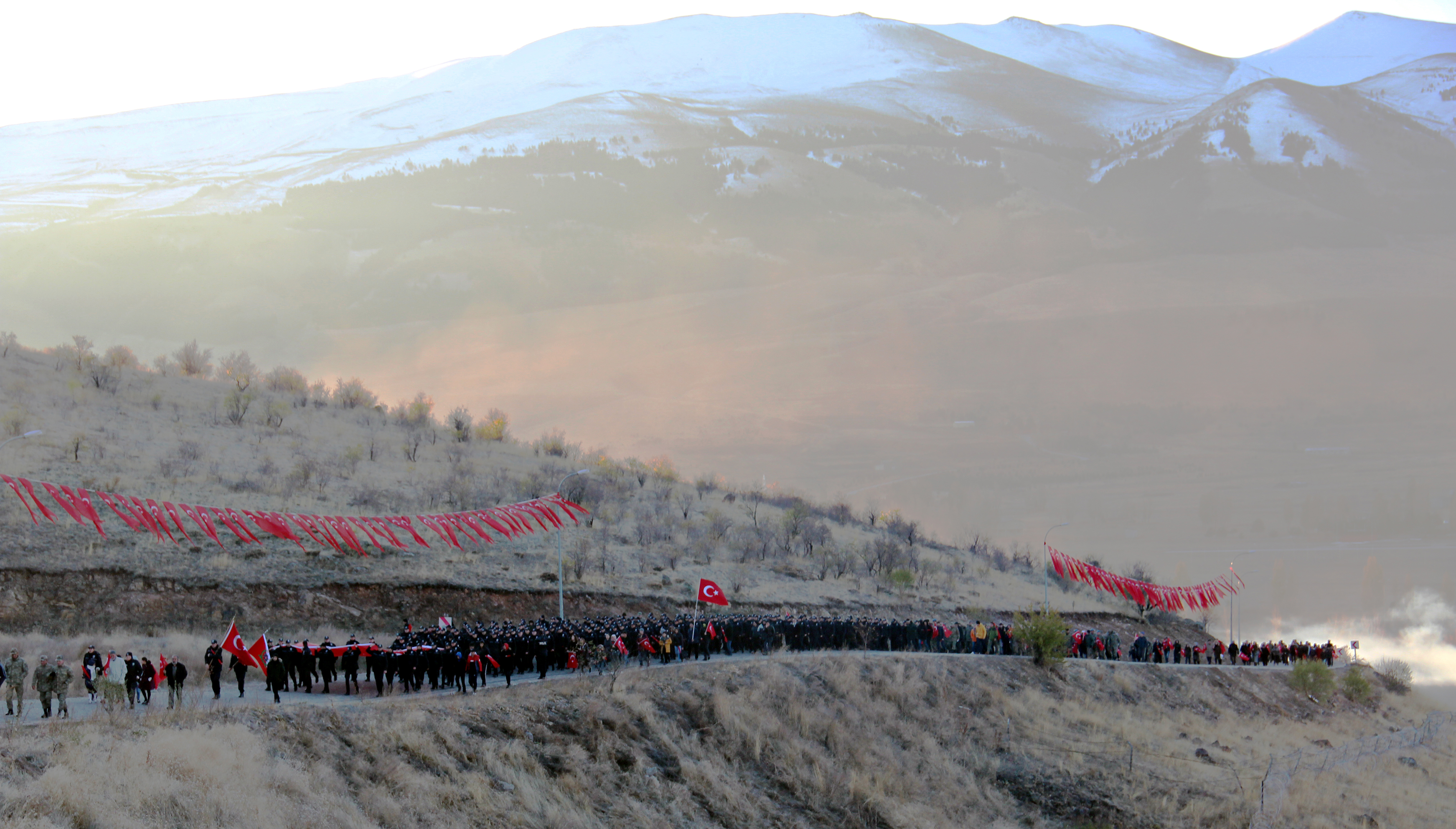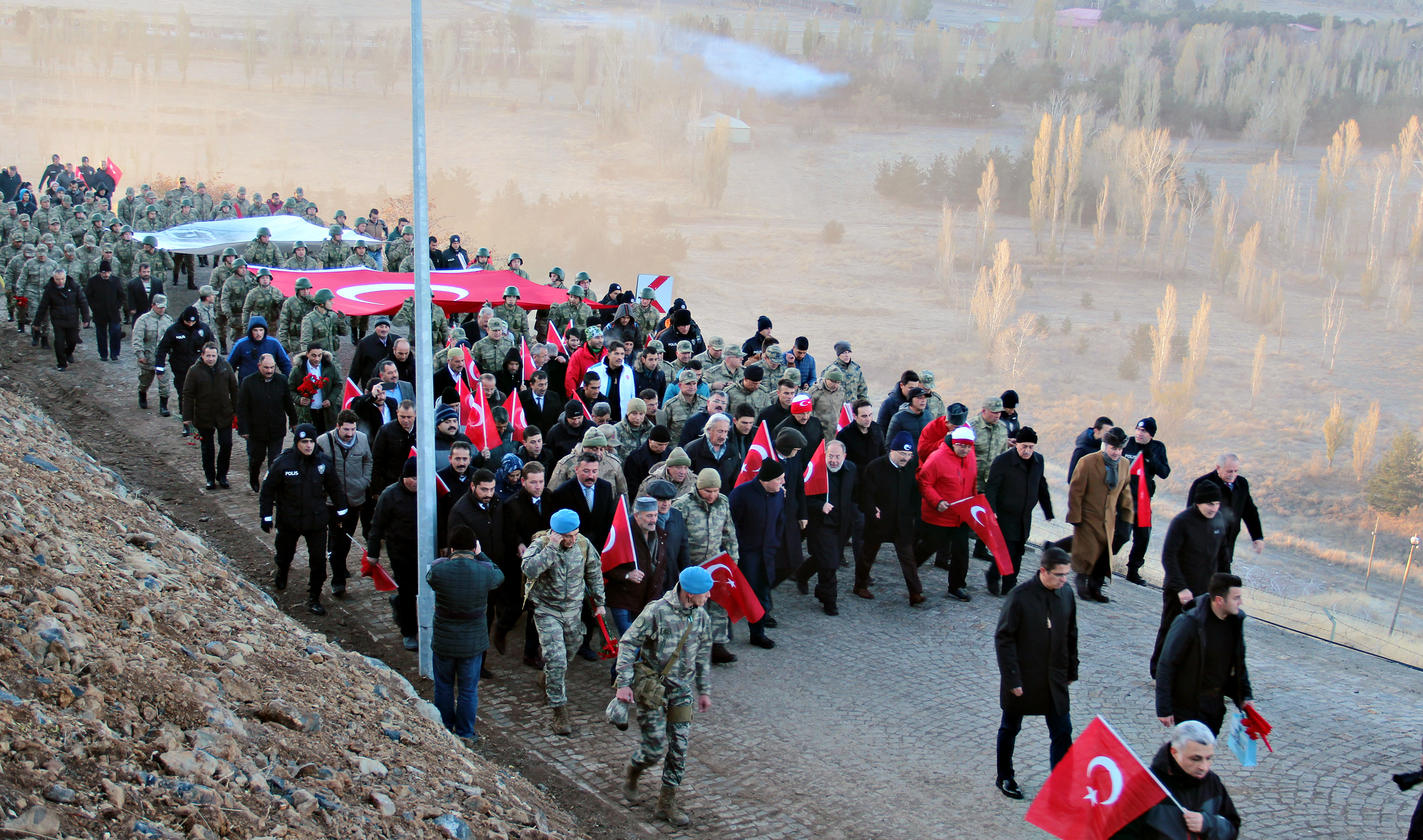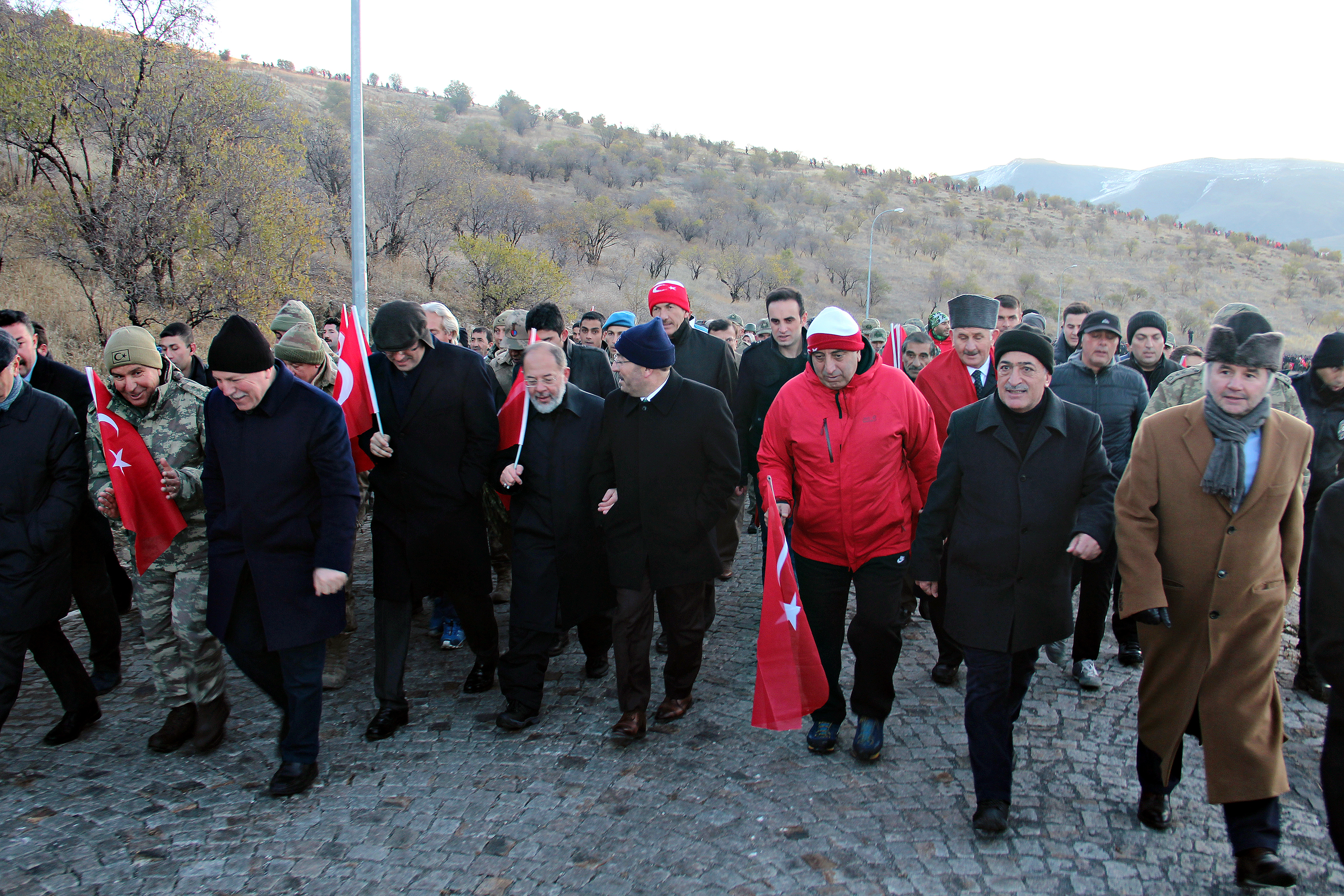 Tarihte "93 Harbi" olarak anılan, 1877-1878 Osmanlı-Rus Savaşının en çetin muharebelerinin yaşandığı ve düşmek üzereyken ellerindeki balta ile nacaklarla savaş meydanına koşan halkın desteğiyle düşmanın yenildiği Topdağı'ndaki Aziziye Tabyalarına saygı yürüyüşü düzenlendi.