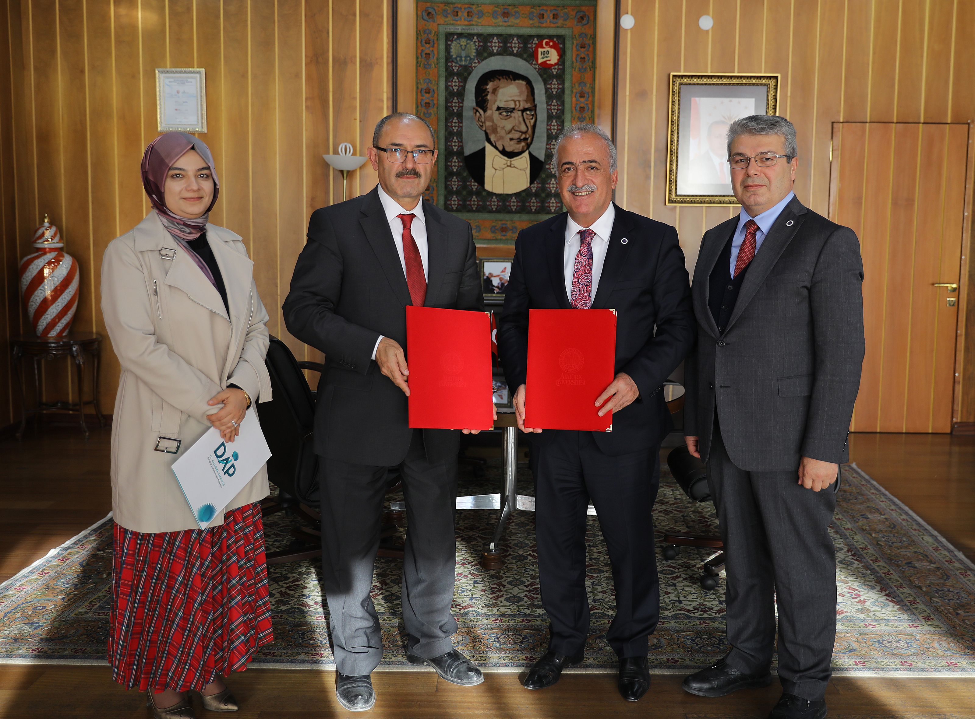 Atatürk Üniversitesi Rektörü Prof. Dr. Ömer Çomaklı ve DAP İdaresi Başkanı Adnan Demir tarafından Rektörlük makamında imzalanan protokolde, Veteriner Fakültesi Dekan Yardımcısı Prof. Dr. Fikret Çelebi ile DAP İdaresi Tarım ve Kırsal Kalkınma Koordinatörü Gül Yıldız da hazır bulundu.