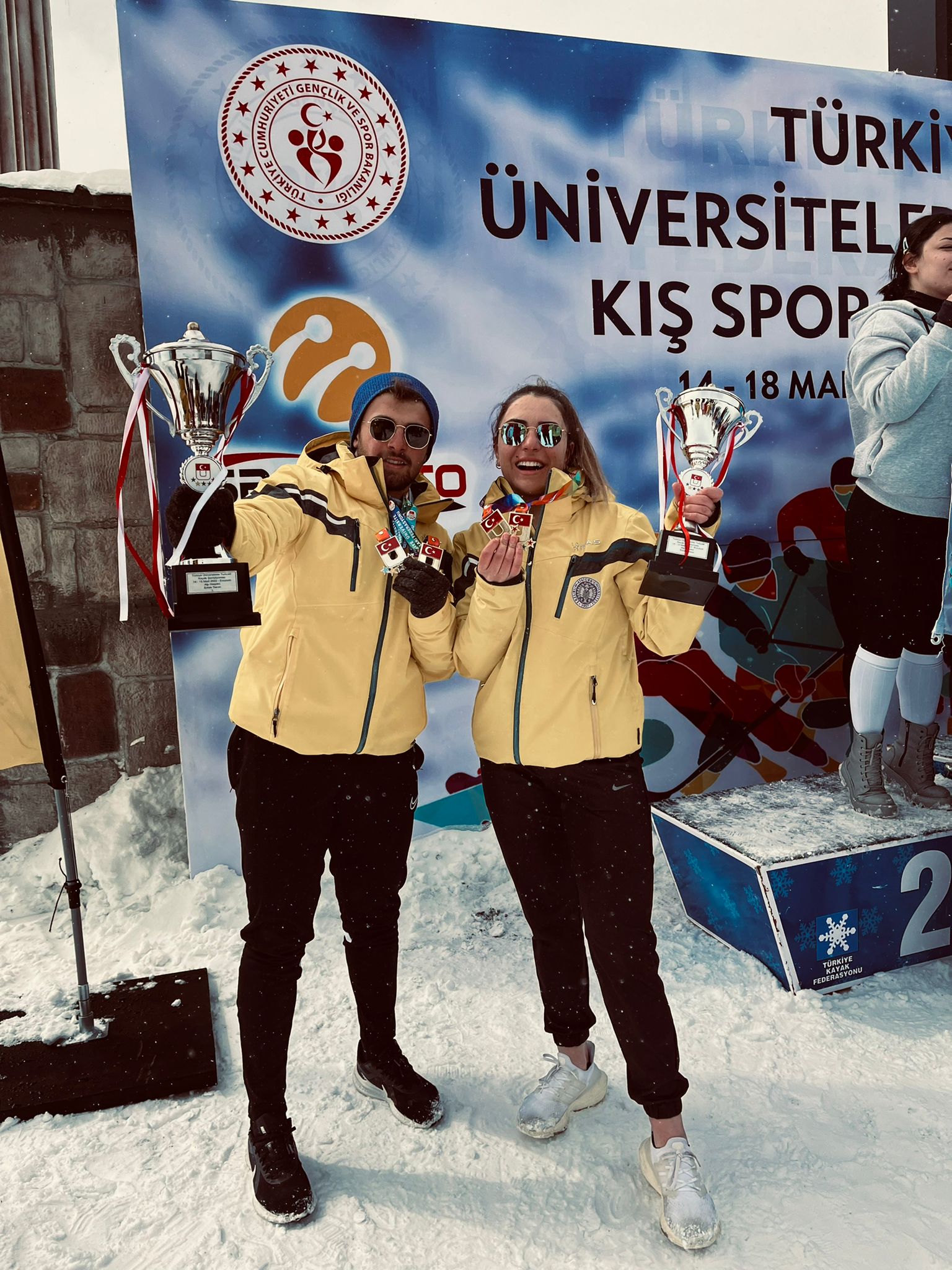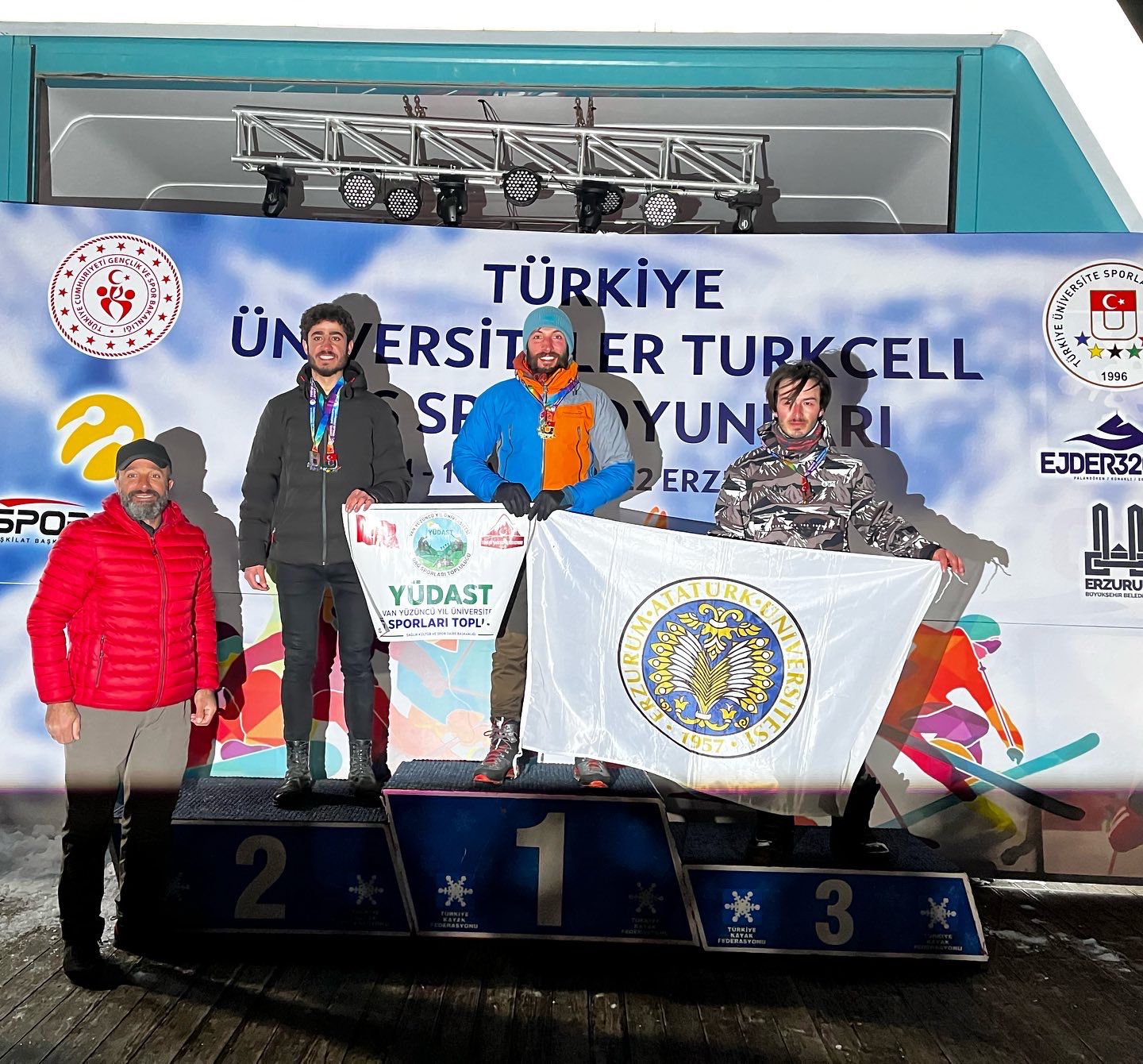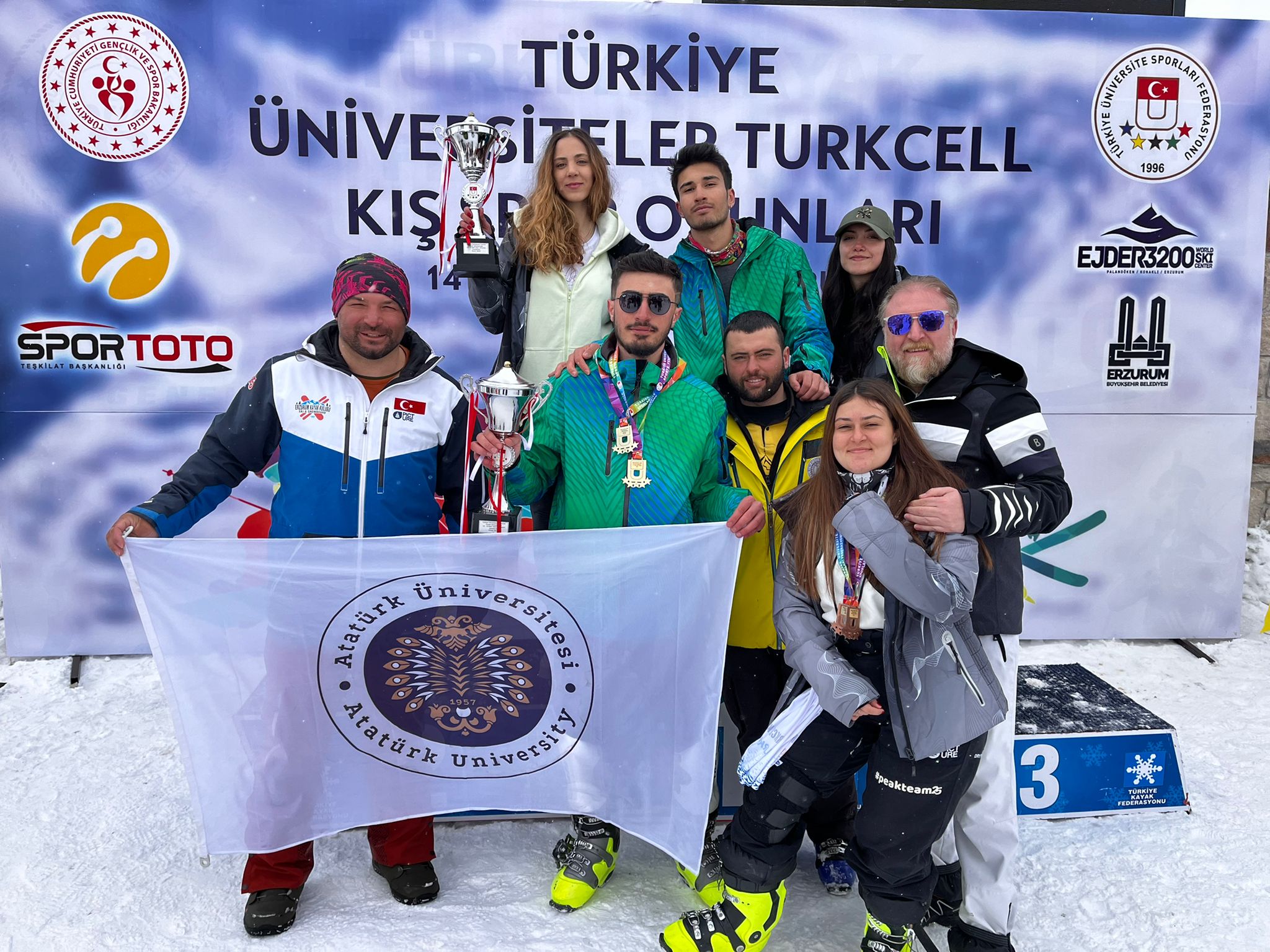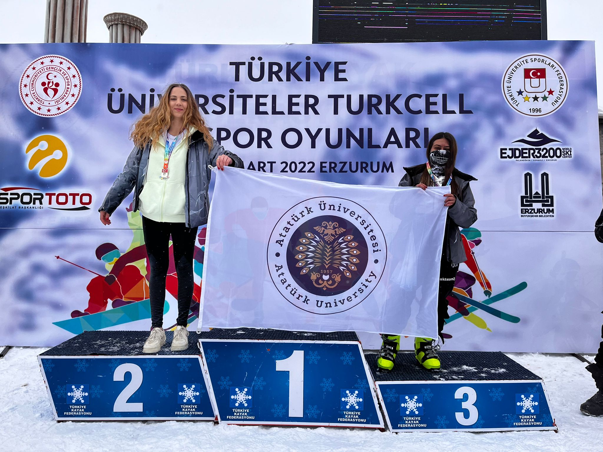 Atatürk Üniversitesinde eğitimlerini sürdüren ve aynı zamanda Türkiye’yi ulusal ve uluslararası alanda temsil eden sporcular, yeni başarılara imza atmaya devam ediyor. Bu kapsamda; 13-17 Mart 2022 tarihlerinde Palandöken Kayak Merkezinde düzenlenen Kış Spor Oyunlarında Kayak Alp Disiplini, Snowboard, Kar Voleybolu, Buz Tırmanışı ve Kızak branşlarının tamamında yarışan Atatürk Üniversiteli sporcular toplam 26 madalya ile önemli bir başarı elde etti.