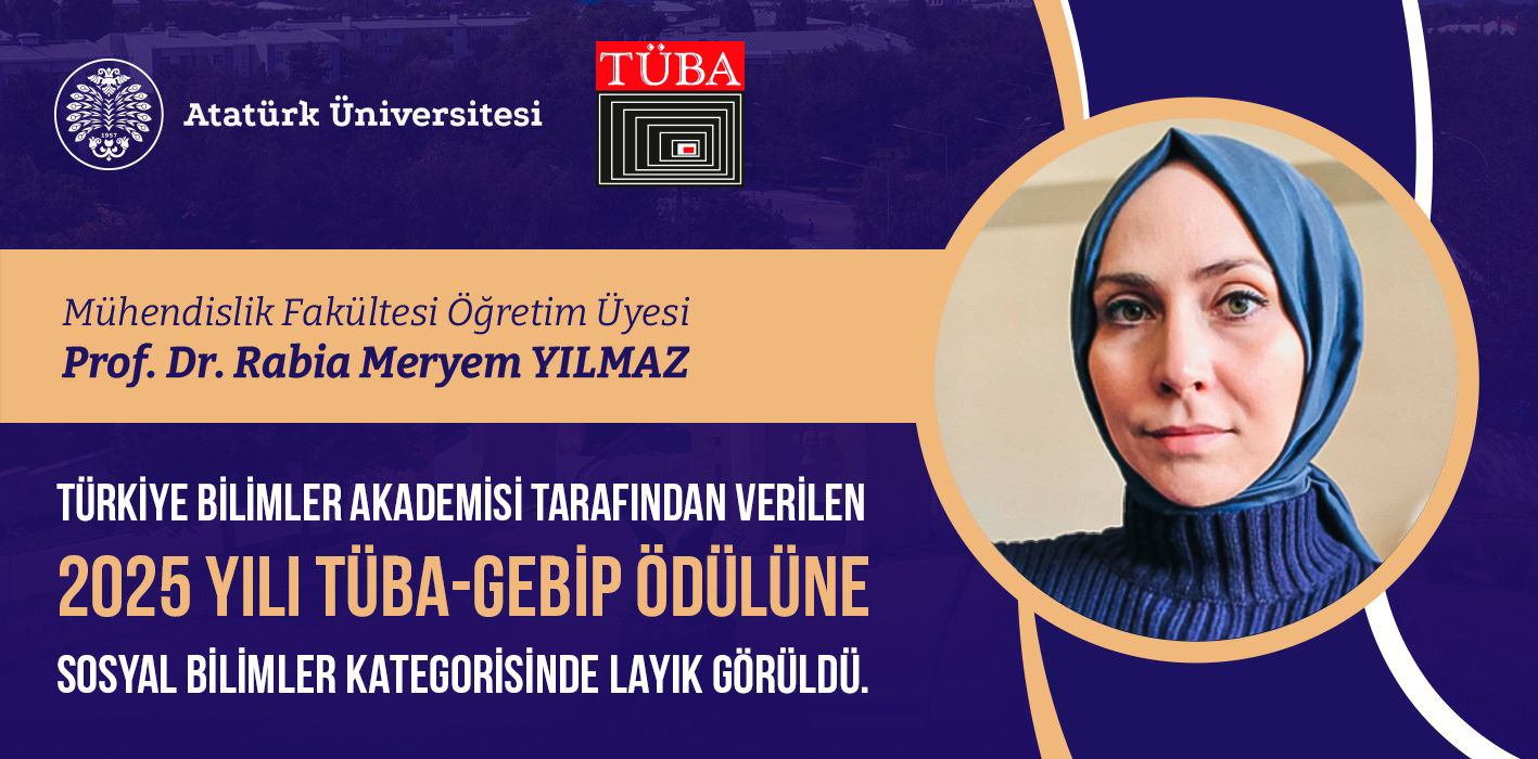Atatürk Üniversitesi Mühendislik Fakültesi öğretim üyesi Prof. Dr. Rabia Meryem Yılmaz, Türkiye Bilimler Akademisi (TÜBA) tarafından verilen 2025 Yılı Üstün Başarılı Genç Bilim İnsanı (GEBİP) Ödülüne layık görüldü.