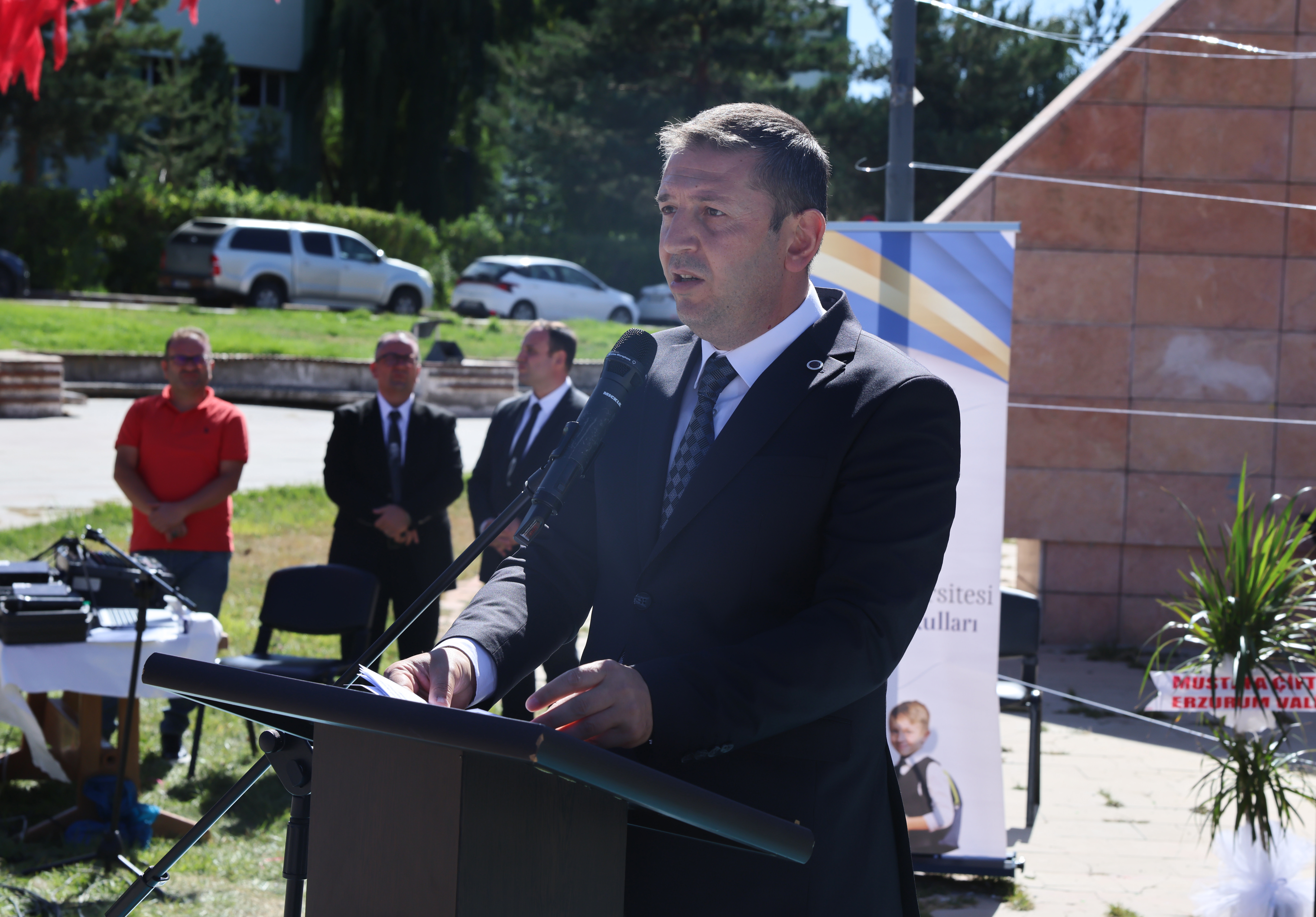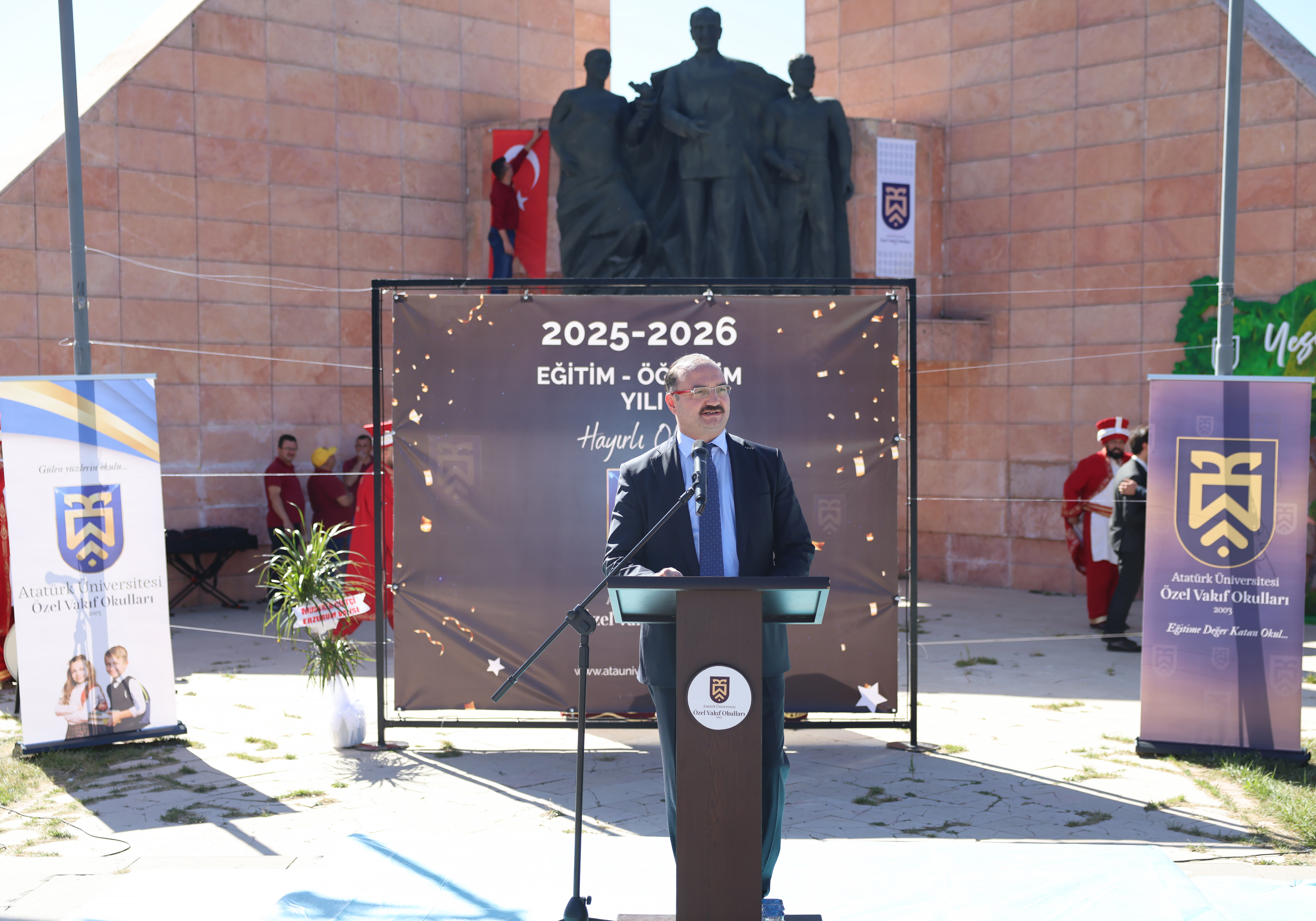 Daha sonra kürsüye gelen Atatürk Üniversitesi Rektörü Prof. Dr. Ahmet Hacımüftüoğlu, Vakıf Okullarının Atatürk Üniversitesinin köklü ilim, irfan ve ahlak geleneğini geleceğin teminatı olan çocuklarla buluşturduğunu vurguladı. Eğitim-öğretimin bir milletin en güçlü dayanağı olduğunu belirten Rektör Hacımüftüoğlu şu ifadeleri kullandı: “Eğitim, bireylerin hayat yolunu aydınlattığı gibi milletlerin de kaderini belirler. Bizler Atatürk Üniversitesi çatısı altında; barışı, adaleti, kardeşliği ve bilimi esas alan bir eğitim anlayışıyla geleceğe yürümekteyiz. İnancımız odur ki, burada yetişen her bir öğrencimiz yalnızca kendi geleceğini değil, aynı zamanda insanlığın ortak geleceğini de aydınlatacaktır.”