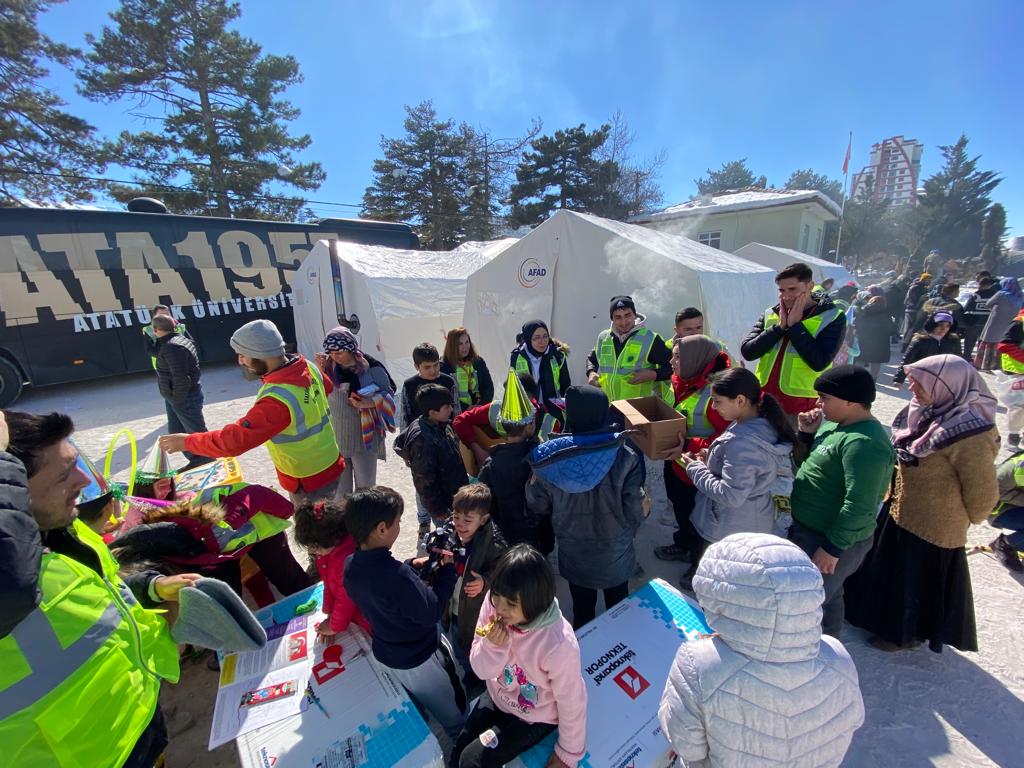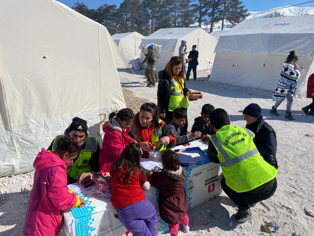 Yaşanan deprem nedeniyle ağır ruhsal travmaya maruz kalan ya da buna şahit olan insanların, en az gıda ve barınma kadar ihtiyaçları olan psikososyal desteği de sağlamak üzere 50 kişiden oluşan uzman ekip, bölgedeki depremzedelere yardımcı olmak üzere Malatya’ya ulaştı ve çalışmalara hemen başladı. Ayrıca; daha önce 4 yardım tırını deprem bölgesine gönderen Atatürk Üniversitesi, Kalkındırma Vakfı aracılığıyla hazırlanan yardım malzemelerini hazır hale getirerek afet bölgesine uğurladı.