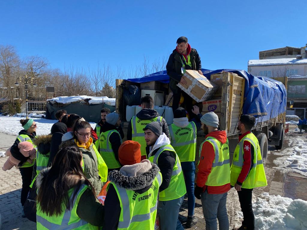 On bir ilde yıkıcı etkiye sebep olan depremin meydana geldiği ilk andan itibaren afet bölgelerine yönelik yardımlarına aralıksız devam eden Atatürk Üniversitesi; şimdiye kadar 100 personeli ile 4 yardım tırını depremin yaralarını sarmak üzere yolcu etmesinin ardından, üniversite personelinden oluşan 50 Psikososyal Destek ve Rehabilitasyon Uzmanı ile 5. yardım tırını da deprem bölgesine sevk etti.