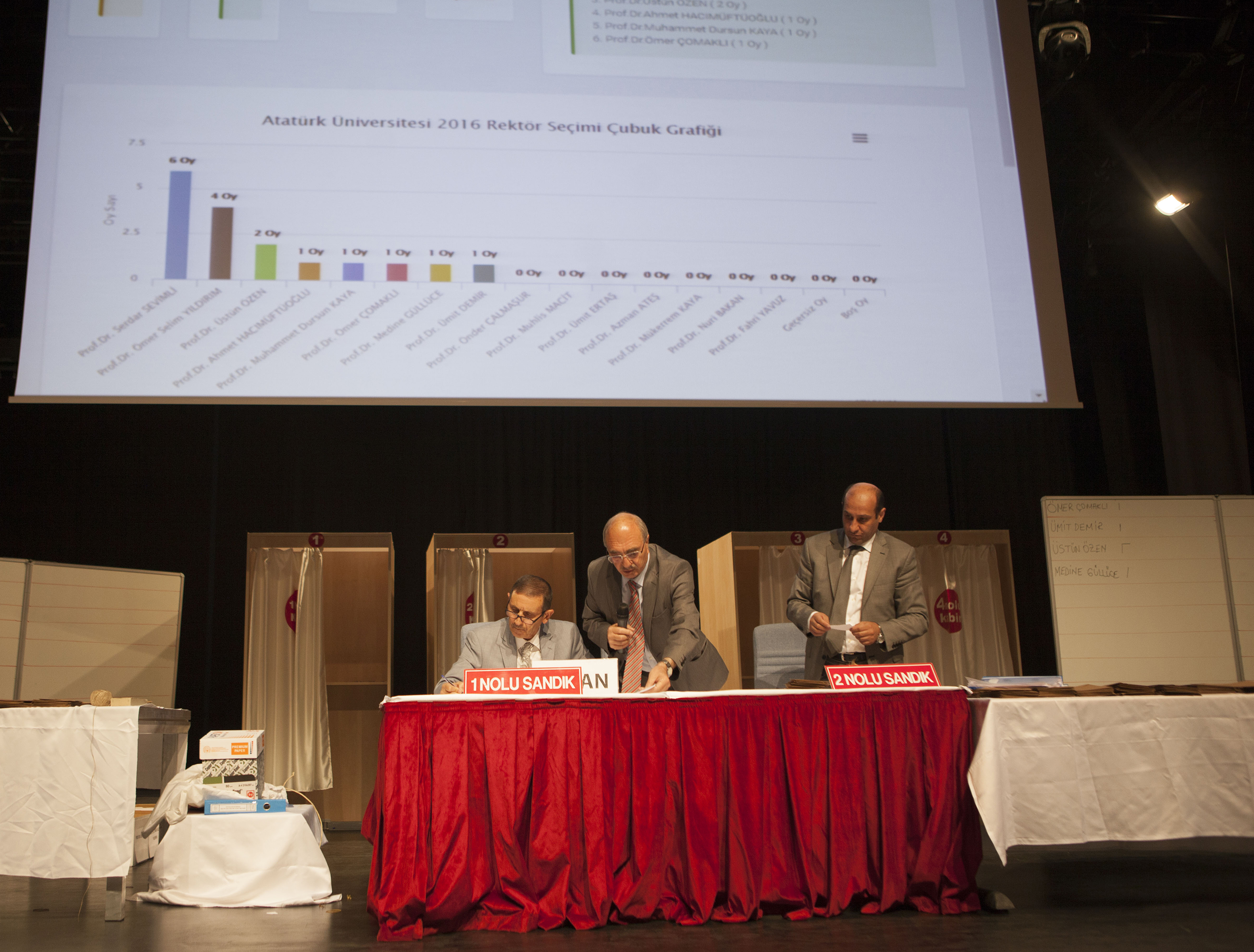 Rektörlük seçiminin ardından en fazla oy alan 6 adayın ismi Rektörlük tarafından Yükseköğretim Kurulu’na gönderilecek ve YÖK ise bu 6 isimden 3’ünü eleyerek geriye kalan 3 adayın ismini Cumhurbaşkanlığı’na gönderecek. Sayın Cumhurbaşkanımız bu 3 adaydan Atatürk Üniversitesi’nin 16. Rektörünün atamasını yapacak.