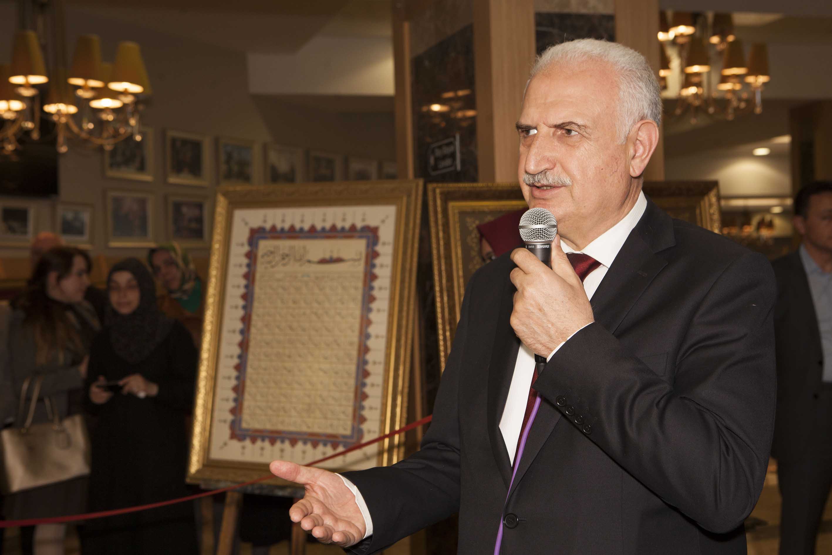 Atatürk Üniversitesi Rektörü Prof. Dr. Hikmet Koçak ise Atatürk Üniversitesi’nin bölgesine hizmet eden ve öncü olan kurumlardan biri olduğuna dikkat çekerek, üniversite öğretim üyelerinin şehirle iş birliği yaparak kent-üniversite bütünleşmesini sağladıklarını belirtti. Rektör Koçak: “ Bugün sanatseverlerle buluşan bu sergi, şehir-üniversite iş birliklerinin en güzel örneklerinden birisidir. Sadece öğrenciler değil şehirden, değişik kesimlerden ve değişik mesleklerin de içinde bulunduğu serginin, Atatürk Üniversitesi’ne yakışır ve Erzurum’a hizmet etme noktasında farklı bir proje olduğunu da ifade etmek istiyorum. Bizim kültürümüzde birazdan göreceğimiz sanatlar çok önemli. Ebru’dan Tezhip’e kadar birçok sanat dalı bizim için ehemmiyet arz ediyor. Çünkü bunlar bizim kültürümüzün birer parçası. Bu sanat dallarını yaşatmanın ayrı bir önemi var. Bizde Atatürk Üniversitesi olarak bu sanat dallarını yaşatmak ve geleceğe aktarmak için elimizden geleni yapıyoruz. Serginin açılmasında emeği geçen herkese teşekkür ediyorum” dedi.
