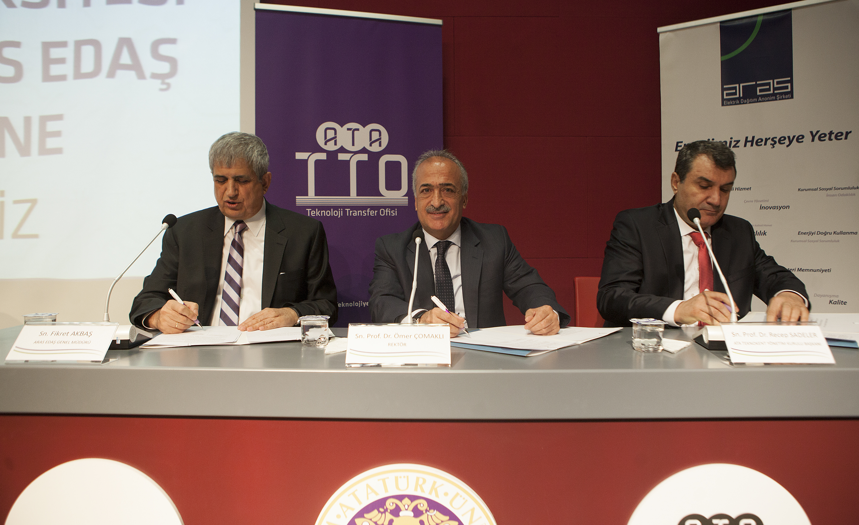 Atatürk Üniversitesi, ATA Teknoloji Transfer Ofisi ve Aras Elektrik Dağıtım A.Ş. ortaklığıyla düzenlenen işbirliği protokol töreni, ATA Teknokent Toplantı Salonu’nda gerçekleşti.
