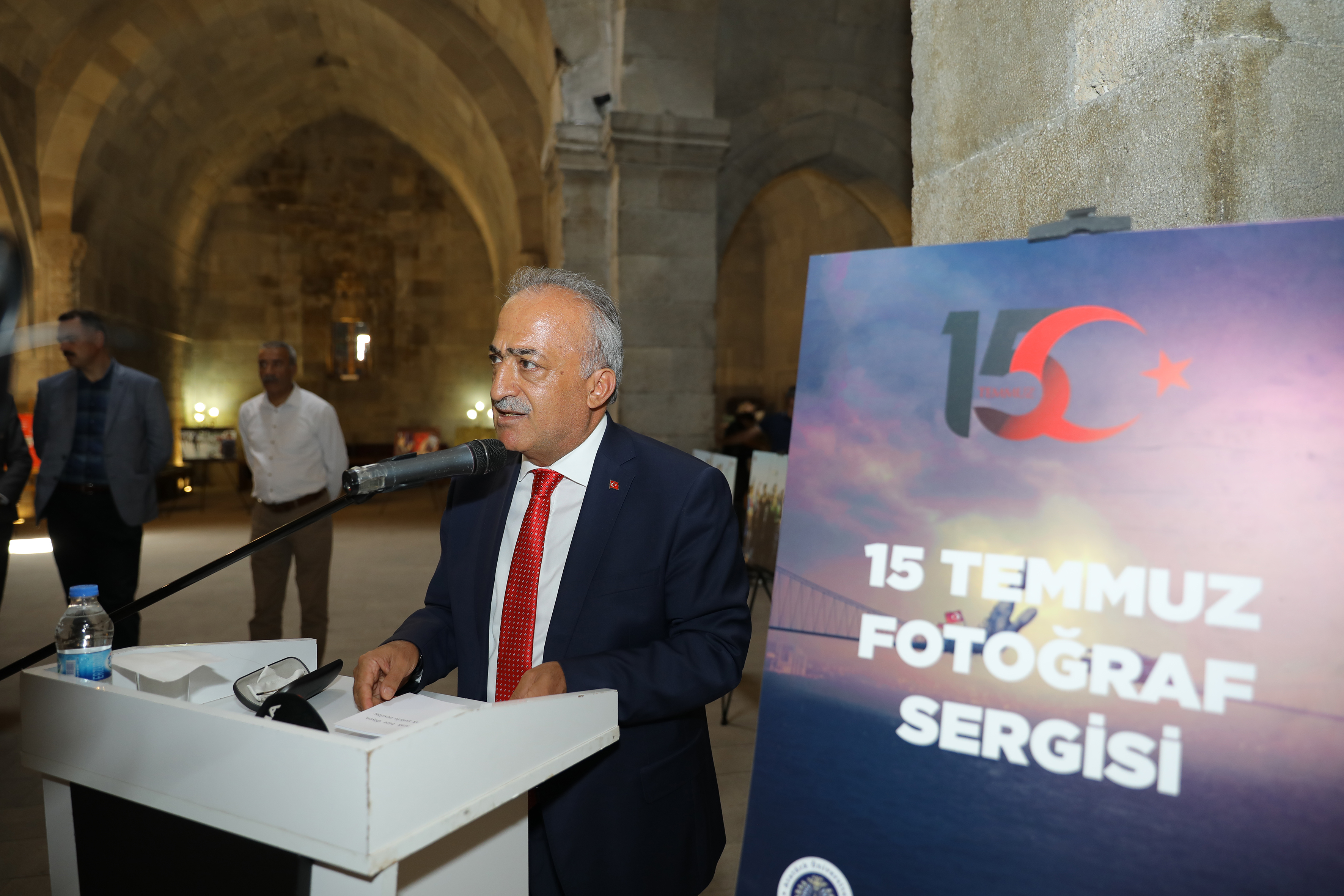 Atatürk Üniversitesi Rektörlüğü ile İHA işbirliği ile açılan sergide 15 Temmuz gecesi başta İstanbul olmak üzere Türkiye'nin dört bir yanında çekilen 65 kare fotoğraf sergileniyor.