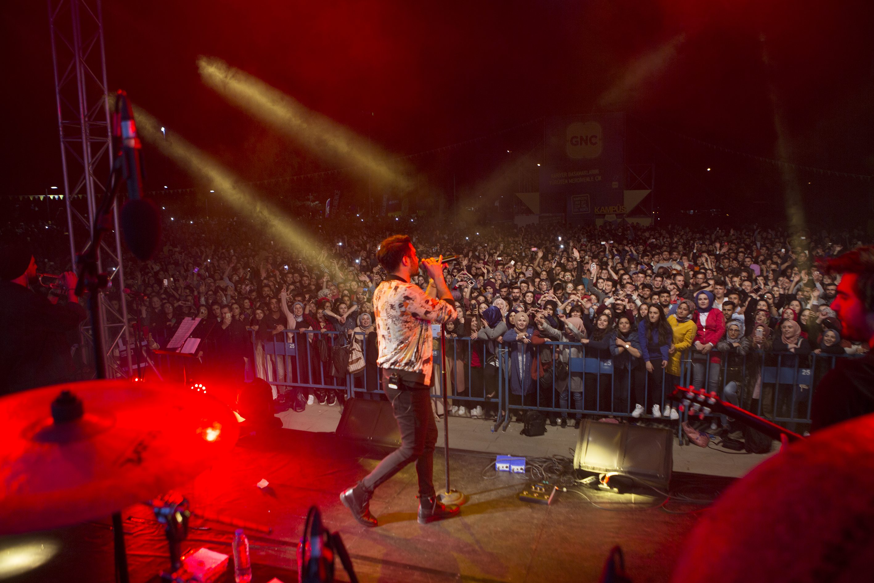 “Kampüse Hoş Geldin” etkinliğinin sürprizi, son dönemin beğenilen sanatçısı İlyas Yalçıntaş oldu. Seslendirdiği birbirinden güzel şarkılarla kendisini dinlemeye gelenlere unutulmaz bir gece yaşatan sevilen sanatçı, dillerden düşmeyen şarkılarını binlerce öğrenciyle birlikte söyledi.
