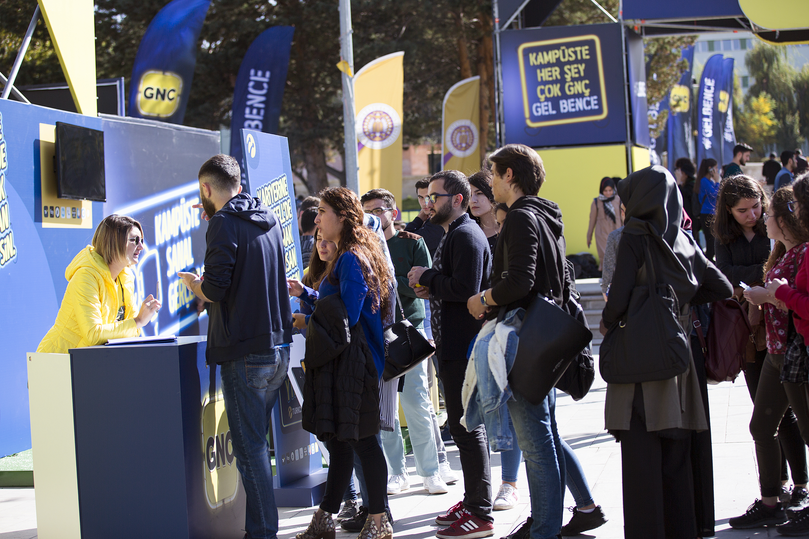 Öğrencilerin uyum sürecini hızlandırmak, sınavlardan önce moral ve motivasyonlarını arttırmak için düzenlenen etkinliklere ilgi oldukça yoğun oldu. Bu yıl Turkcell’in sponsorluğunda gerçekleşen “GNÇ Kampüsüne Gel Bence” etkinliği renkli anlara sahne oldu. Çeşitli birçok aktiviteyi bünyesinde barındıran ve öğrencilere oldukça eğlenceli bir parkur imkânı sunan programda; drone uçuş eğitiminden, parmak güreşine, sanal gerçeklik odasından, sahne performanslarına kadar birçok etkinlik yer aldı.