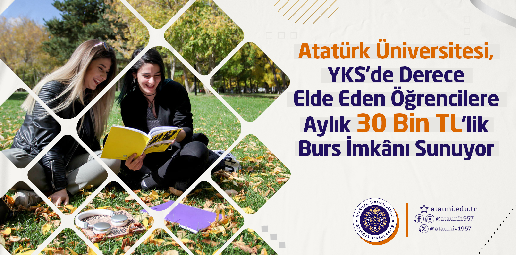 Atatürk Üniversitesi Kalkındırma Vakfı, 2025 Yükseköğretim Kurumları Sınavında (YKS) dereceye giren başarılı öğrenciler için dikkat çeken bir burs programı başlattı. Türkiye’de örneğine az rastlanan bu burs sistemiyle, Atatürk Üniversitesine belirli başarı sıralamalarıyla yerleşen öğrencilere öğrenim süreleri boyunca aylık 30.000 TL burs desteği sağlanacak.
