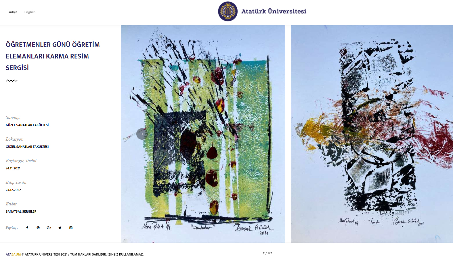 Akademisyenlerin ve öğrencilerin hazırladıkları sergilerin dijital ortamlarda paylaşılmasını sağlayan E-sergi Platformu ile sergi süreci ve sonrasında bireylerin diledikleri zaman bu sergilere ulaşabilmesini sağlıyor. E-sergi platformunda şimdiye kadar bilimsel ve sanatsal olmak üzere toplam 26 sergi açık erişime sunuldu.