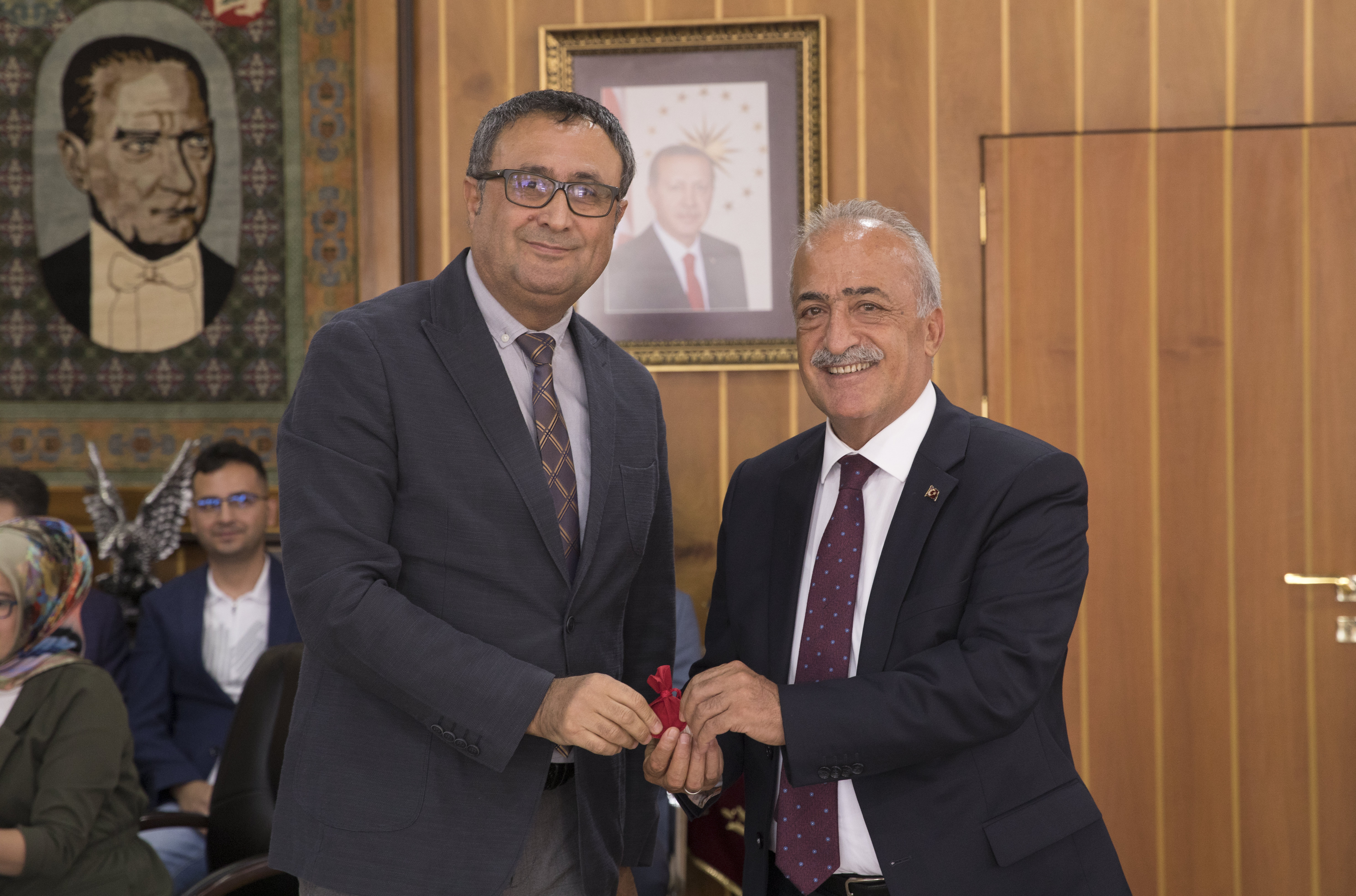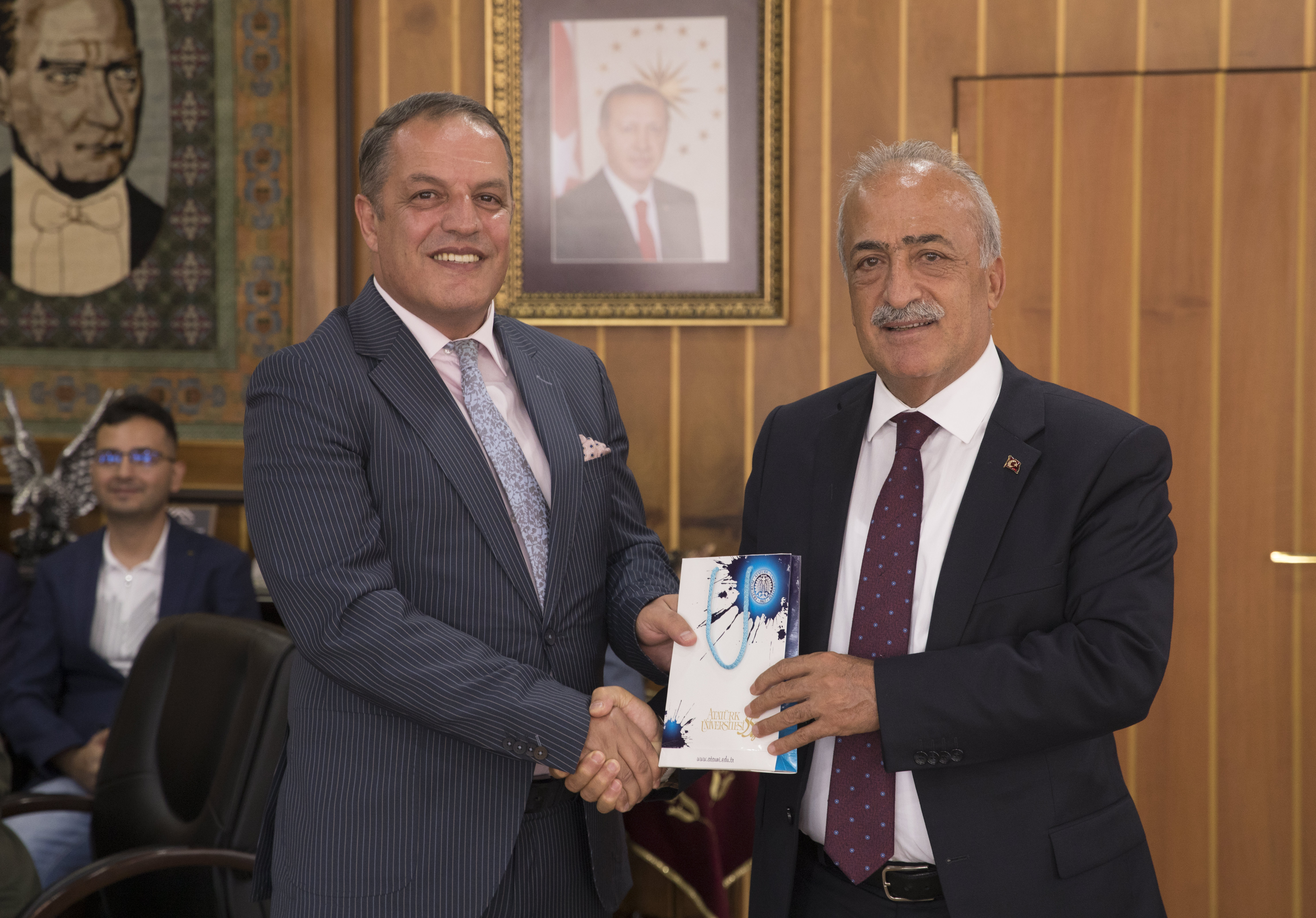 Yayın, patent, proje ve firmaları ile bir adım öne çıkan akademisyenlerini ödüllendirmeye devam eden Atatürk Üniversitesinde, Rektör Prof. Dr. Ömer Çomaklı, ödül almaya hak kazanan akademisyenlerle bir araya geldi.