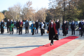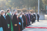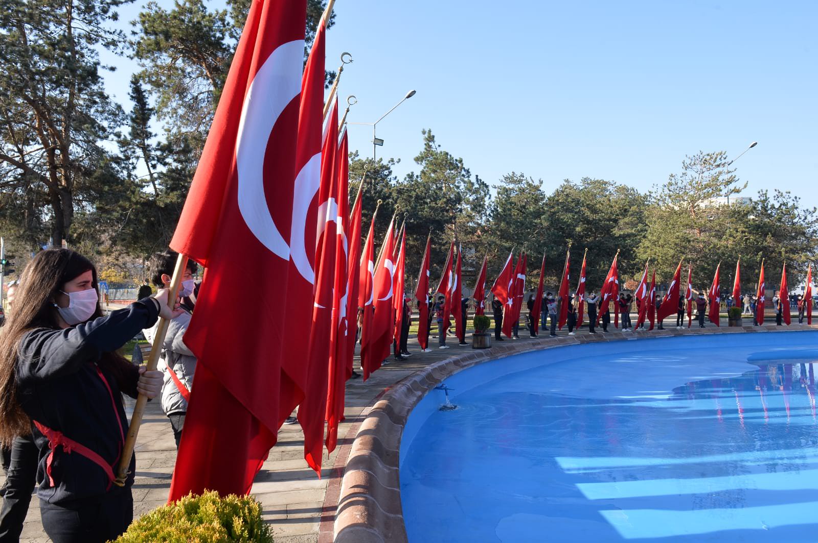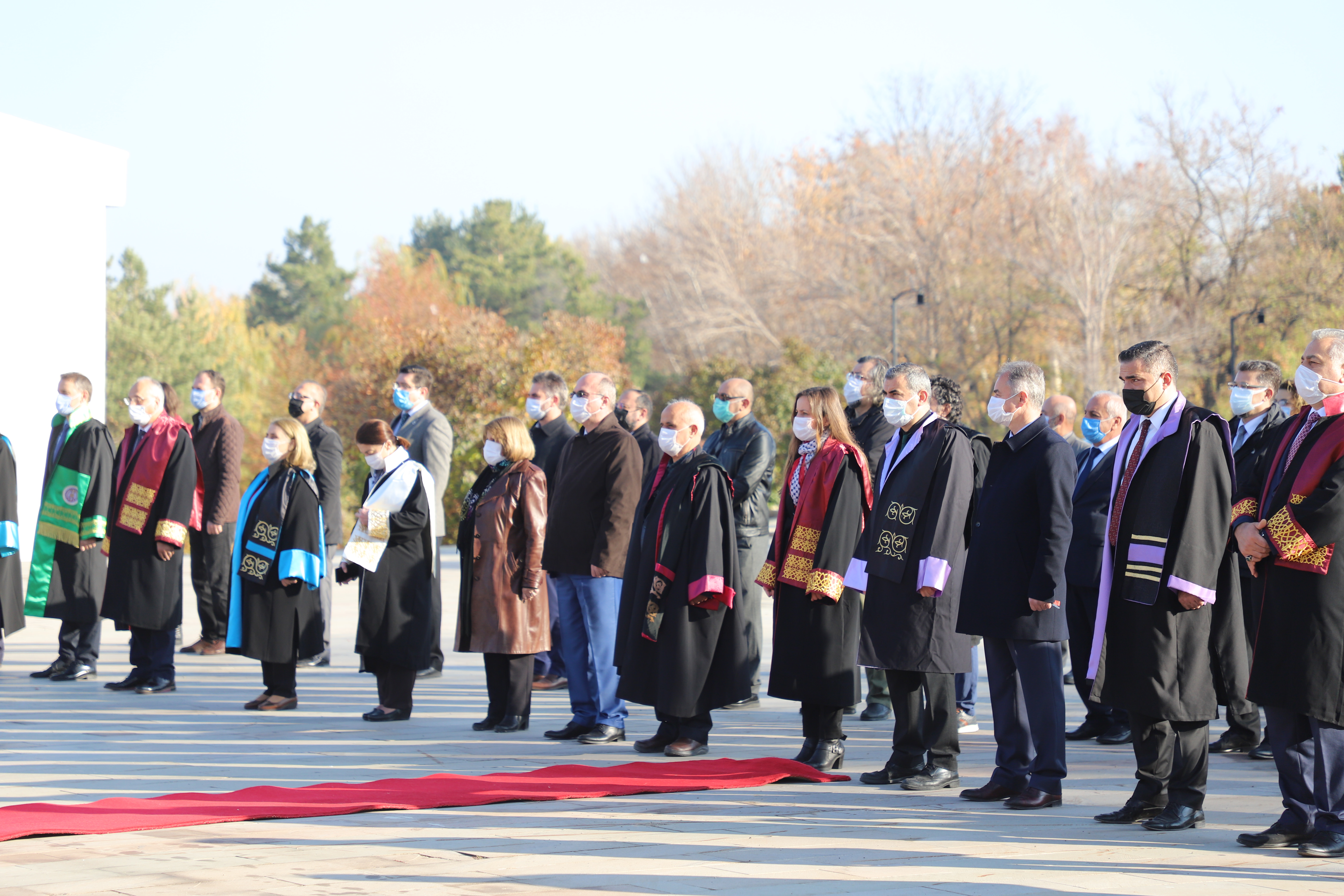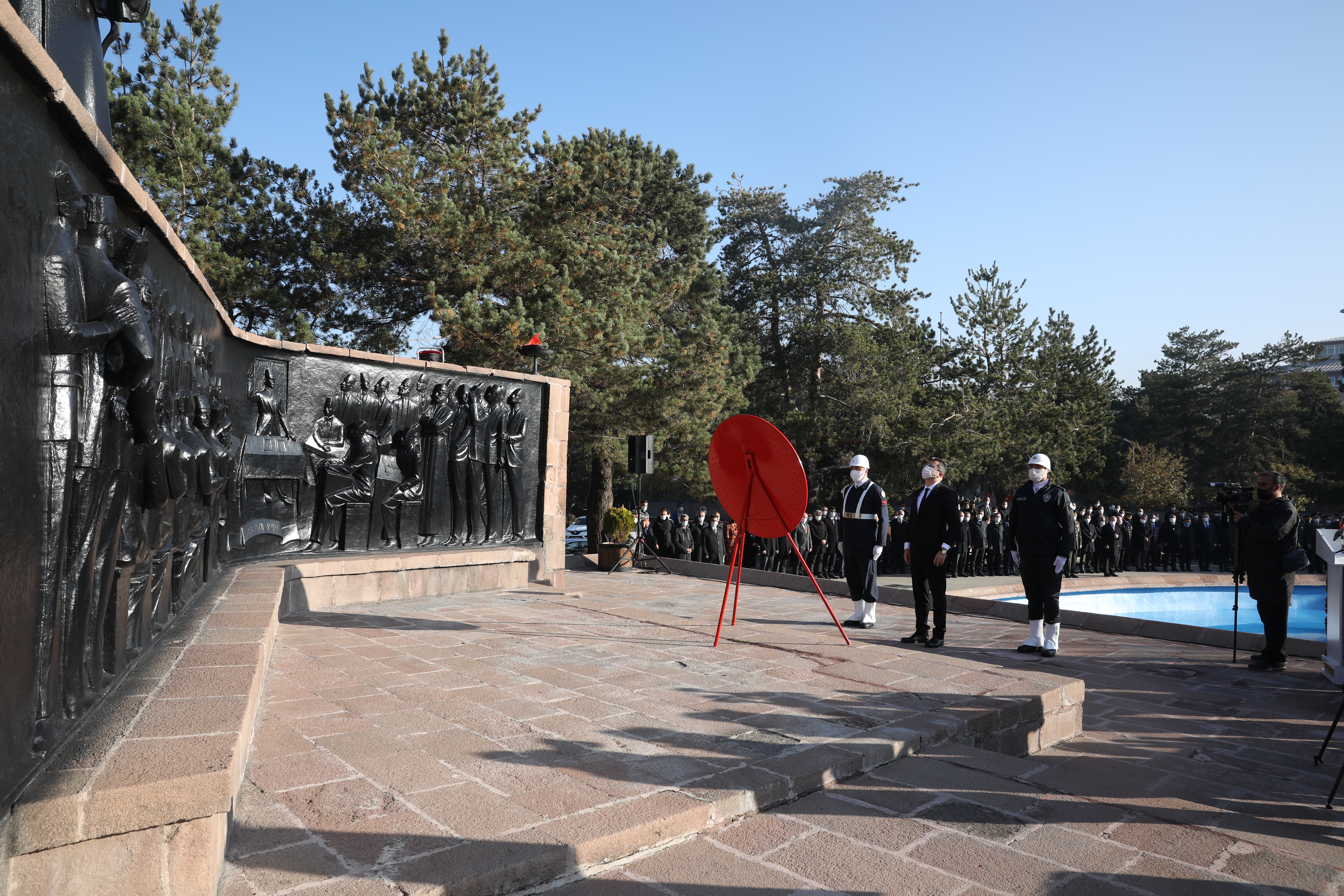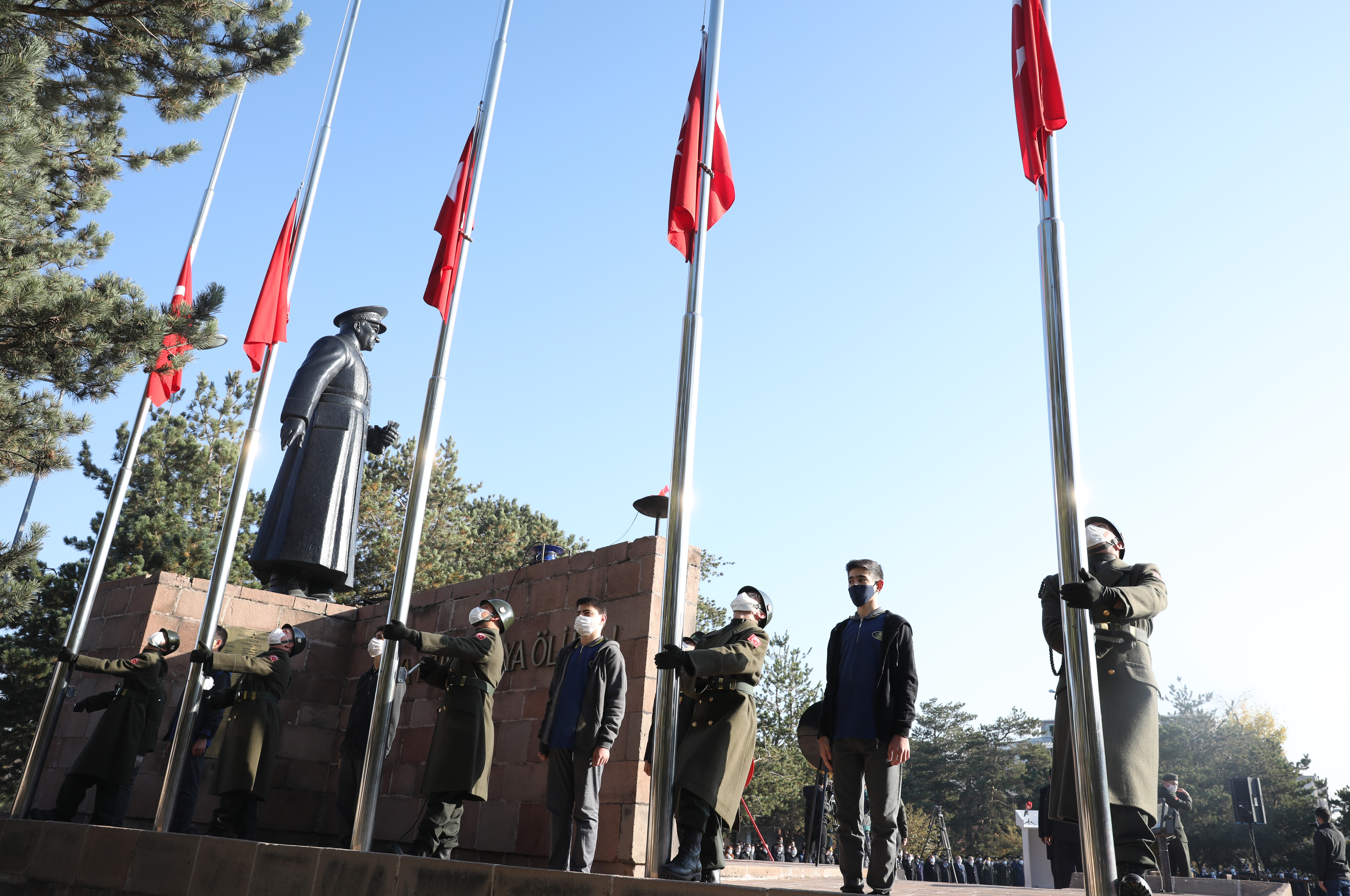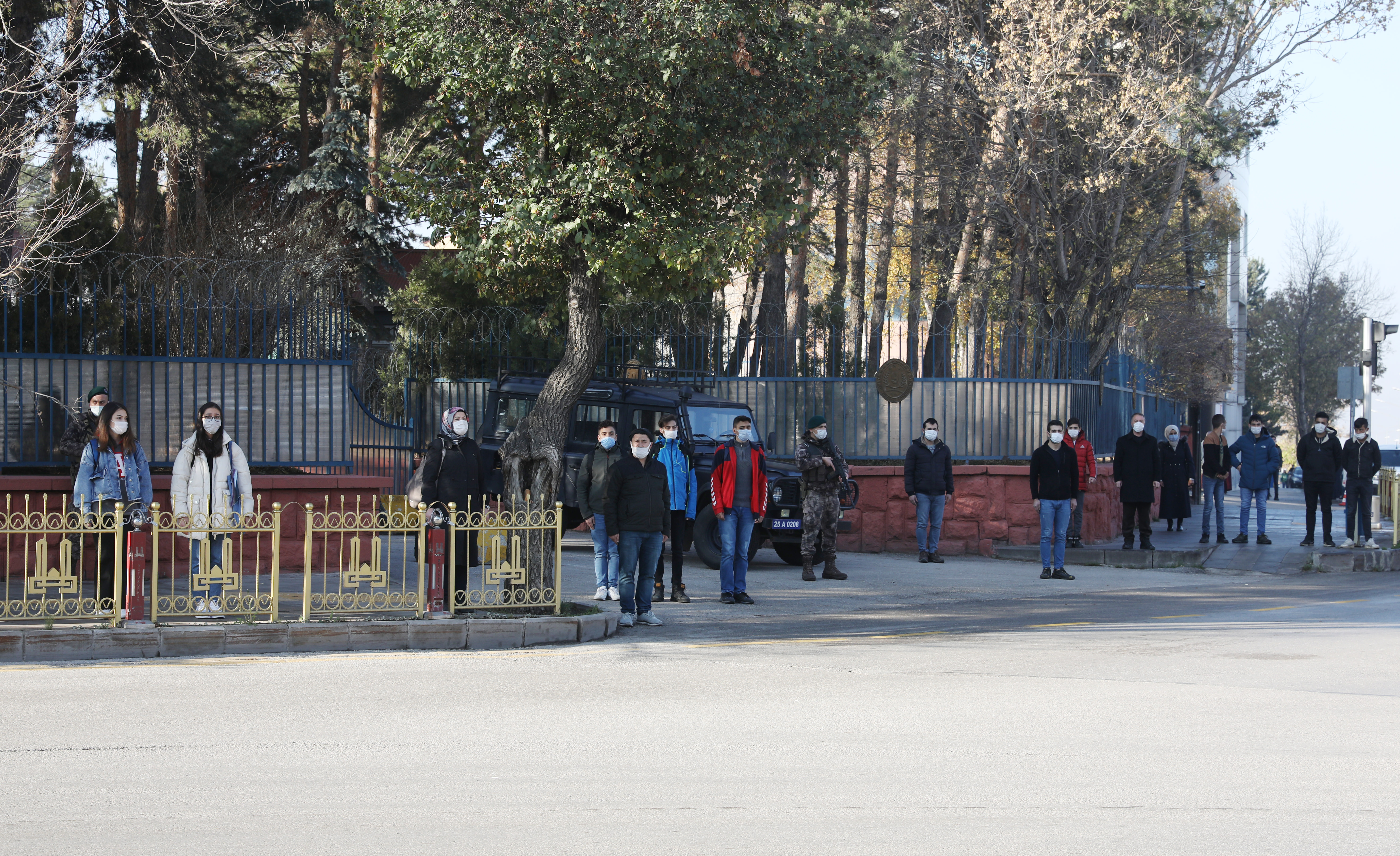 10 Kasım Atatürk’ü anma programı, pandemi kuralları çerçevesinde Havuzbaşında bulunan Atatürk Anıtına çelenklerin sunulmasıyla başladı. Saatler 09:05’i gösterdiğinde sirenler eşliğinde iki dakikalık saygı duruşunda bulunuldu. Ardından İstiklal Marşının okunmasıyla bayraklar yarıya indirildi. Devlet erkânının hazır bulunduğu törende, Atatürk Üniversitesi Rektörü Prof. Dr. Ömer Çomaklı da yer aldı.