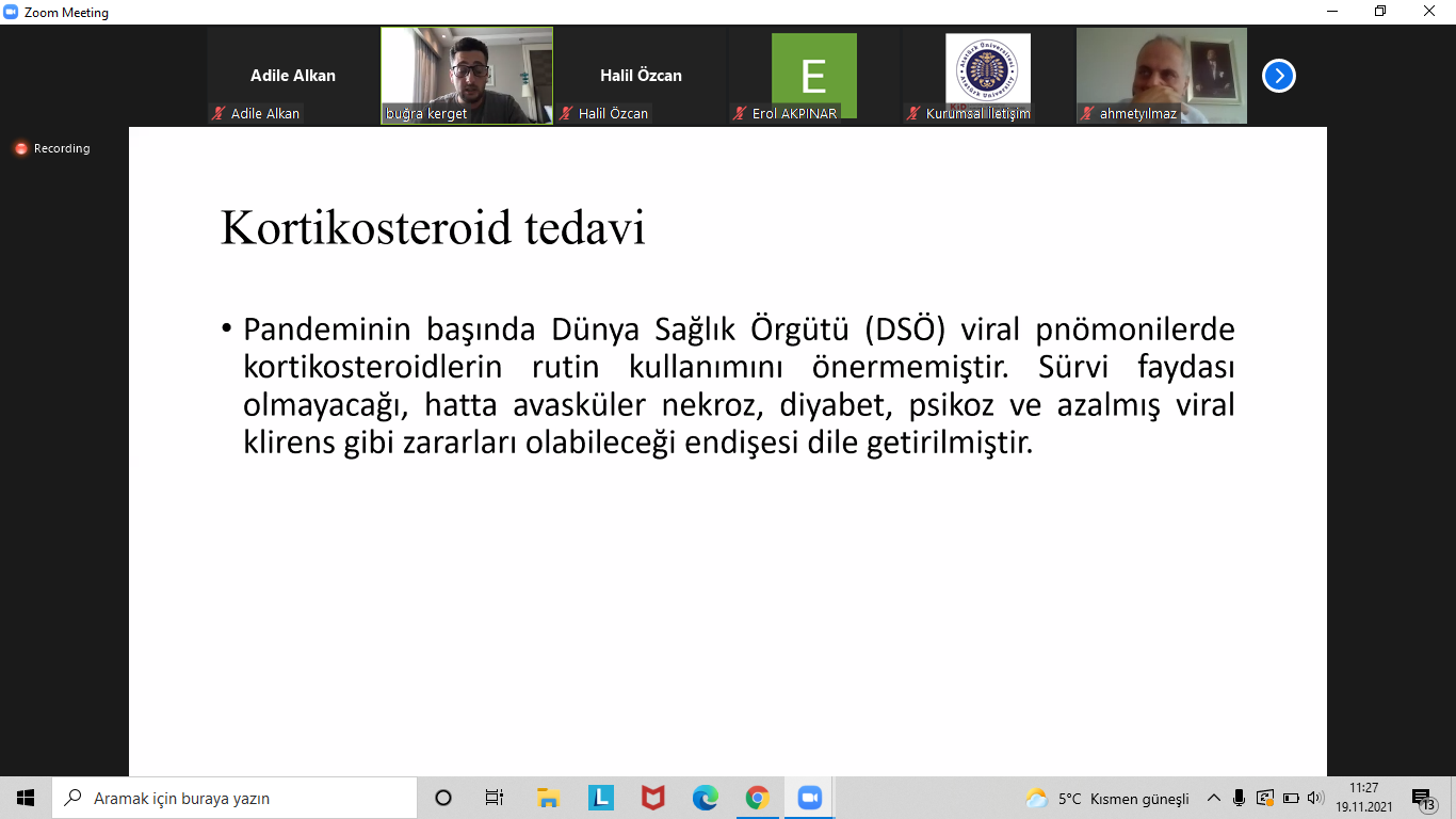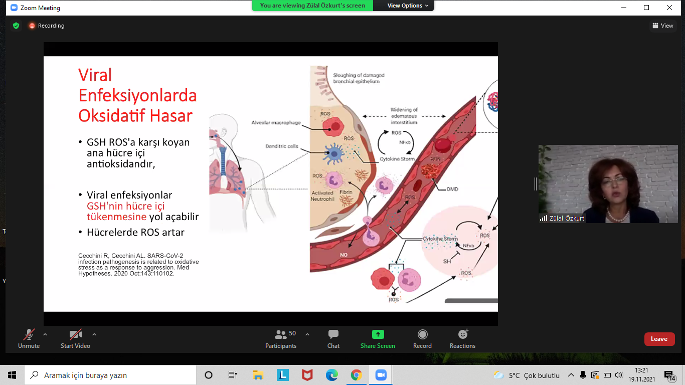 Programın ikinci oturumunda Prof. Dr. Zülal Özkurt Covid-19’da destekleyici tedavileri konu alırken virüse yakalananların ne tür besinler tüketmesi ve nelere dikkat etmesi gerektiğine değinerek pandemi dönemindeki sosyal faktörlerin etkisini anlattı. Koronavirüsün sınıflandırmalarından olan Long Covid ile Post Covid’e değinen Mustafa Altındiş bireysel tedbirlerin yanı sıra aşının çok etkili olduğunun da altını çizdi. Prof. Dr. Nazım Doğan ise yoğun bakım tedavileri, kritik hastaların yoğum bakım süreçlerini aktardıktan sonra gözlemlerini ve önerilerini sundu.