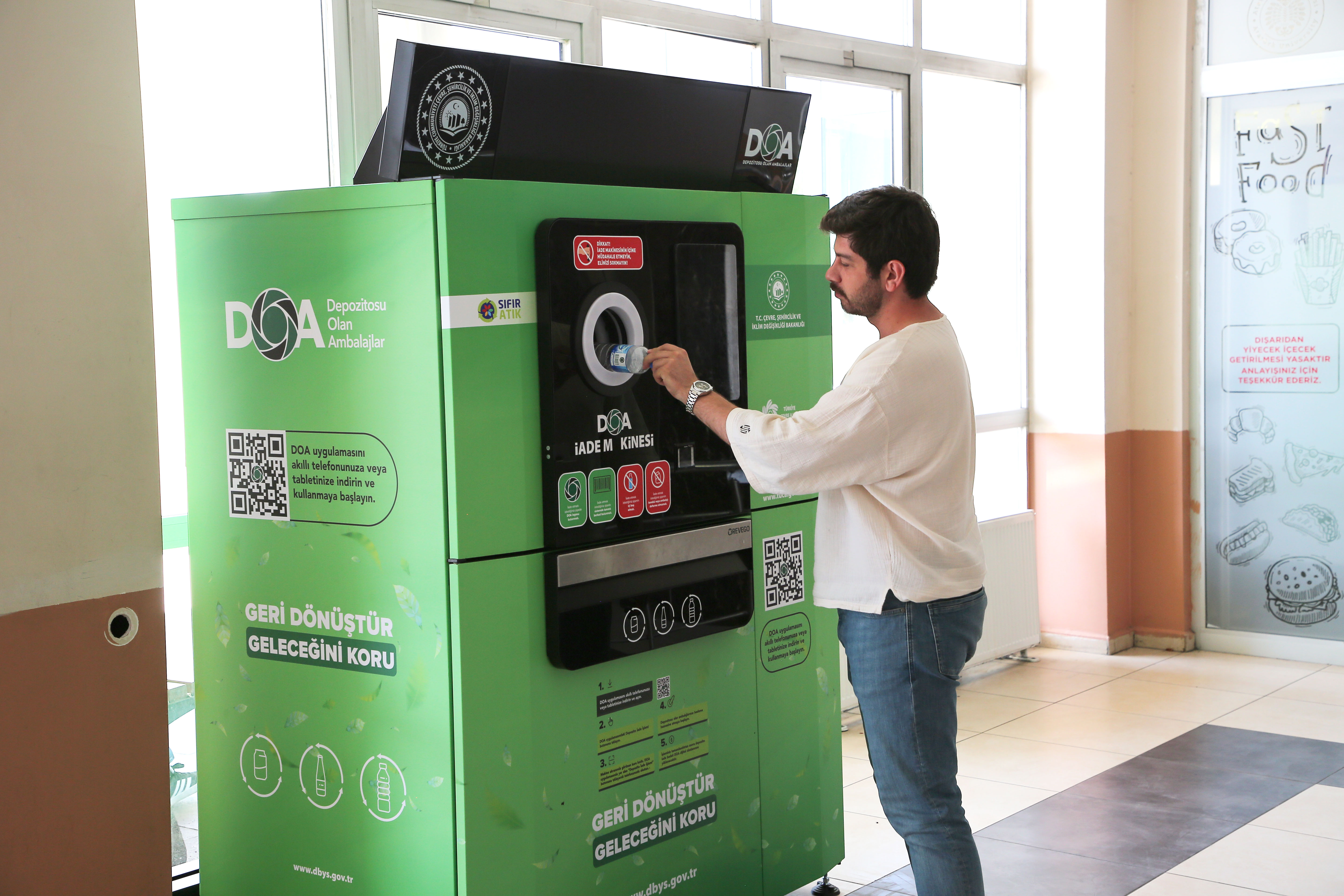Üniversite kampüsünde, Merkezi Yemekhane ve Okuma Salonuna yerleştirilen makinelerle; öğrencilerin ve vatandaşların cam, plastik ve alüminyum ambalaj atıkları geri dönüşüme kazandırılarak e-cüzdanlarına depozito bedeli olarak geri iade ediliyor.