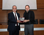 Programın sonunda Rektör Çomaklı, katkılarından dolayı Murat Doğanşafak’a Atatürk Üniversitesi plaketi armağan etti.