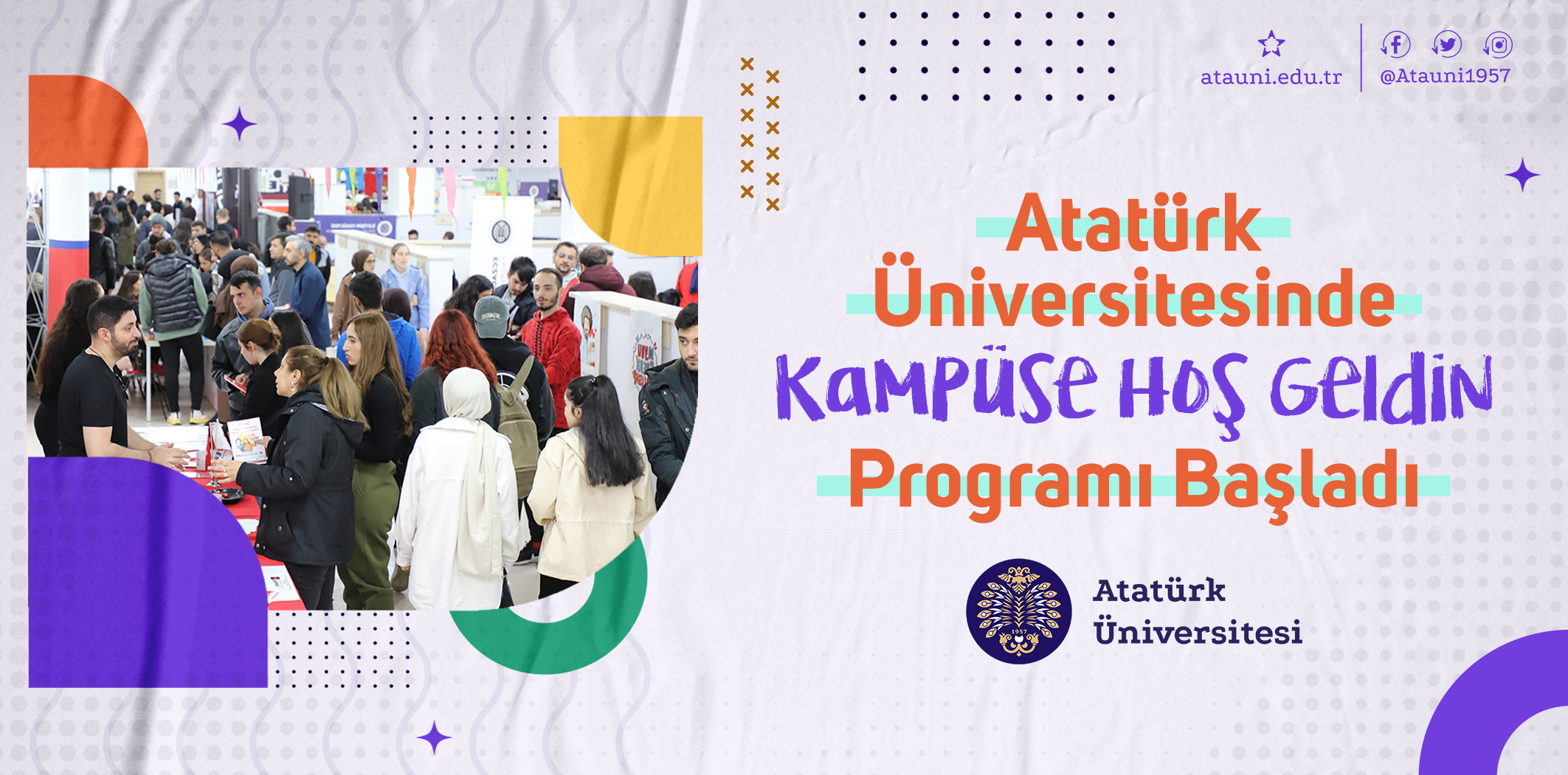Öğrencilerin kampüs hayatına uyumlarını kolaylaştırmak, üniversitenin yapısı ile olanaklarını tanımalarına yardımcı olmak ve alışma sürecini hızlandırmak amacıyla fakülte ve yüksekokullara kayıt yaptıran yeni öğrencilere yönelik hazırlanan Kampüse Hoş Geldin Oryantasyon Programı, Atatürk Üniversitesinde coşkuyla başladı.